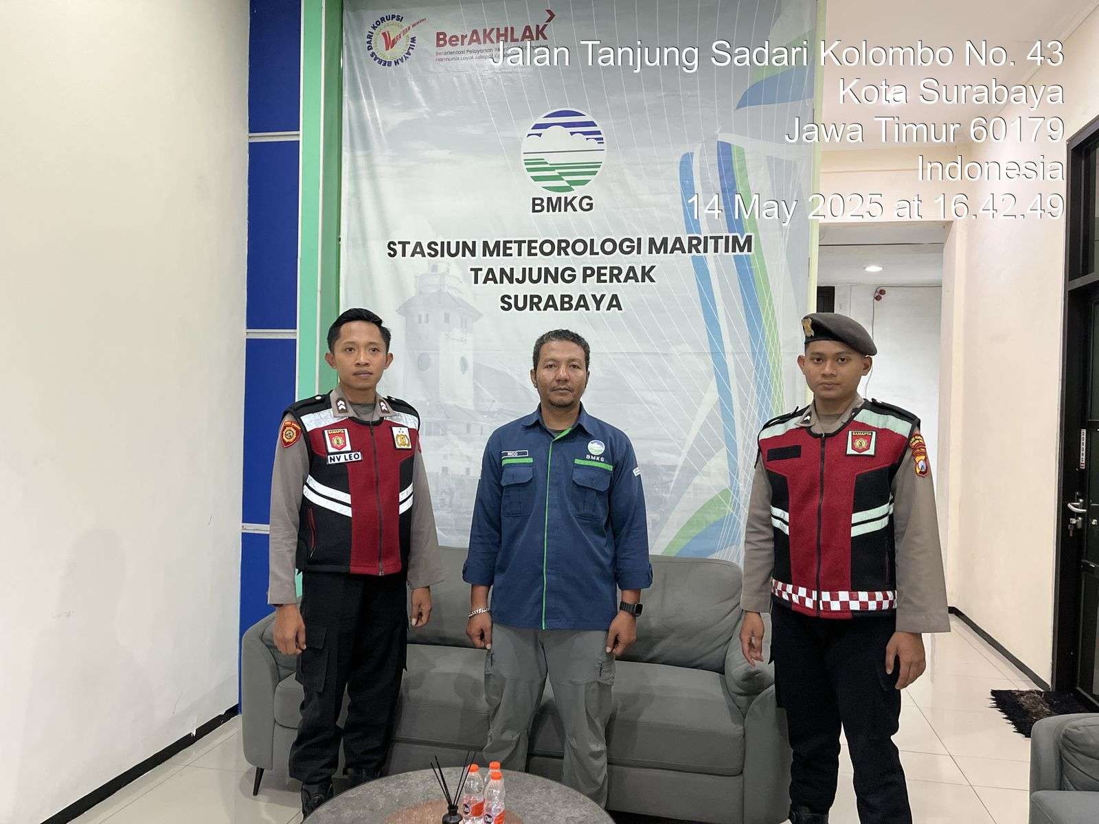 “Unit patroli kota presisi Satsamapta Polres Pelabuhan Tanjung Perak melaksanakan patroli di kantor BMKG Tanjung Perak guna berkoordinasi, komunikasi, dan kolaborasi untuk mengetahui kondisi alam dan cuaca terkini,” ujar Iptu Suroto.