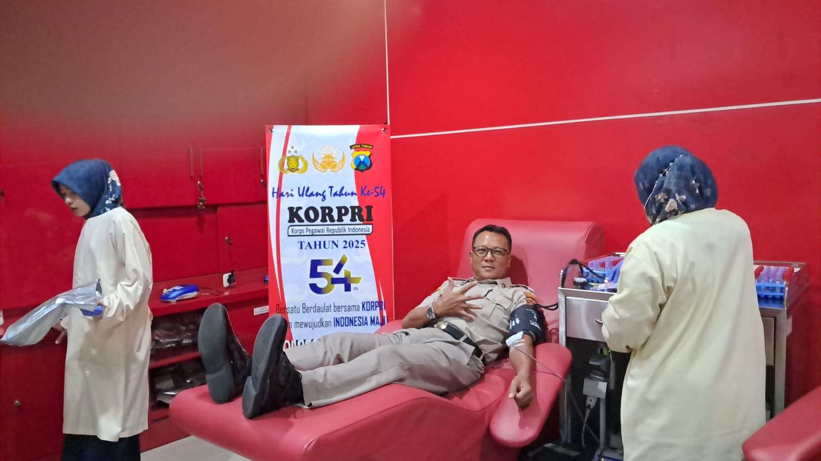 Sidoarjo, Indonesiajayanews.com – Memperingati Hari Ulang Tahun Korps Pegawai Republik Indonesia (KORPRI) ke-54, ASN Polresta Sidoarjo menggelar Bakti Kesehatan Donor Darah di kantor PMI Sidoarjo, pada Jumat (21/11/2025).