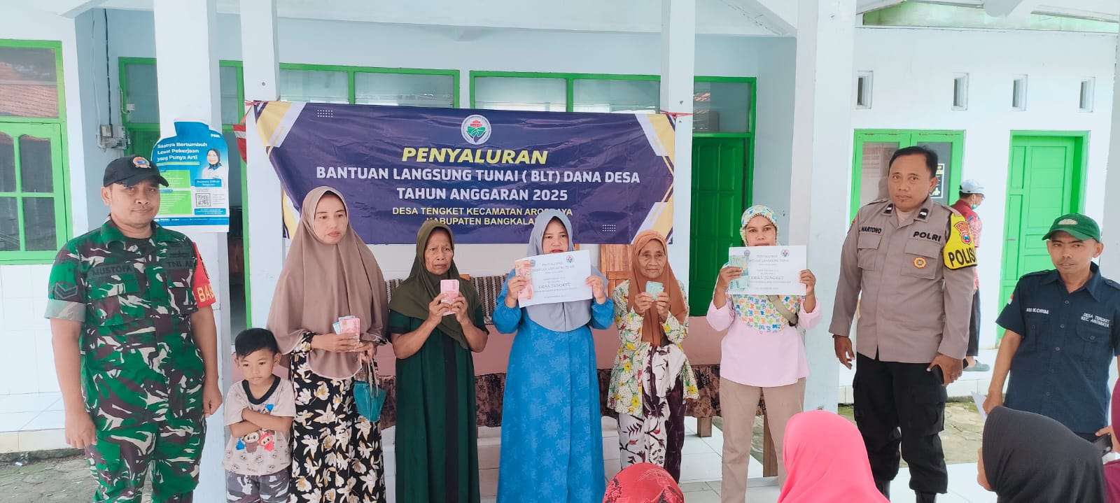 Bangkalan, Indonesiajayanews.com — Babinsa Koramil 0829-13/Arosbaya, Sertu Mustofa, bersama Bhabinkamtibmas Polsek Arosbaya melaksanakan pendampingan dan pengamanan penyaluran Bantuan Langsung Tunai Kesejahteraan Rakyat (BLT Kesra) Tahun 2025 kepada warga Desa Tengket, Kecamatan Arosbaya, pada Kamis, (4/12/25). Kegiatan berlangsung di Balai Desa Tengket dengan tertib dan lancar.