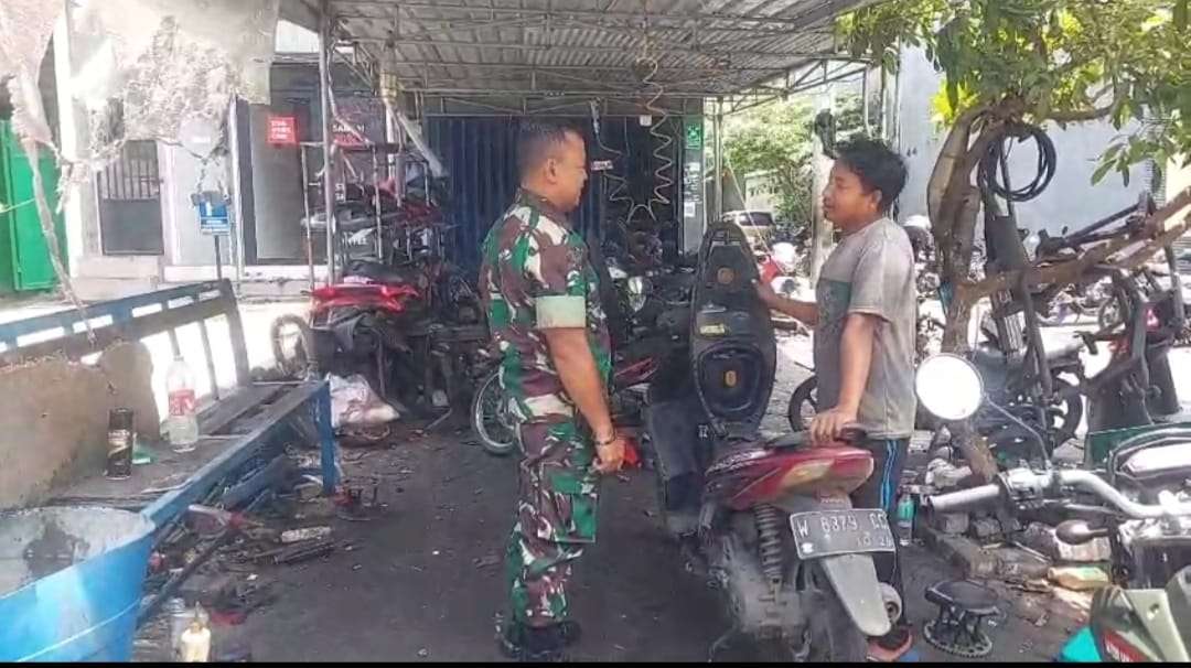 Kegiatan Komsos tersebut dilakukan bersama pemilik bengkel, Bapak Nanang, serta para pekerja, di antaranya Bapak Revi dan empat karyawan lainnya. Suasana keakraban terlihat saat Babinsa berdialog langsung dengan para pelaku usaha di lingkungan tersebut.