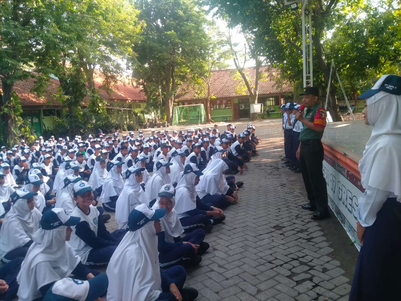 Gresik, Indonesiajayanews.com — Dalam rangka kegiatan Pembinaan Teritorial (Binter), Babinsa Koramil 0817/06 Manyar, Sertu Afifudin, melaksanakan pelatihan Peraturan Baris Berbaris (PBB) dan Wawasan Kebangsaan (Wasbang) kepada para siswa SMP Negeri 17 Gresik yang berlokasi di Desa Sukomulyo, Kecamatan Manyar, Kabupaten Gresik. Rabu (4/2/2026).