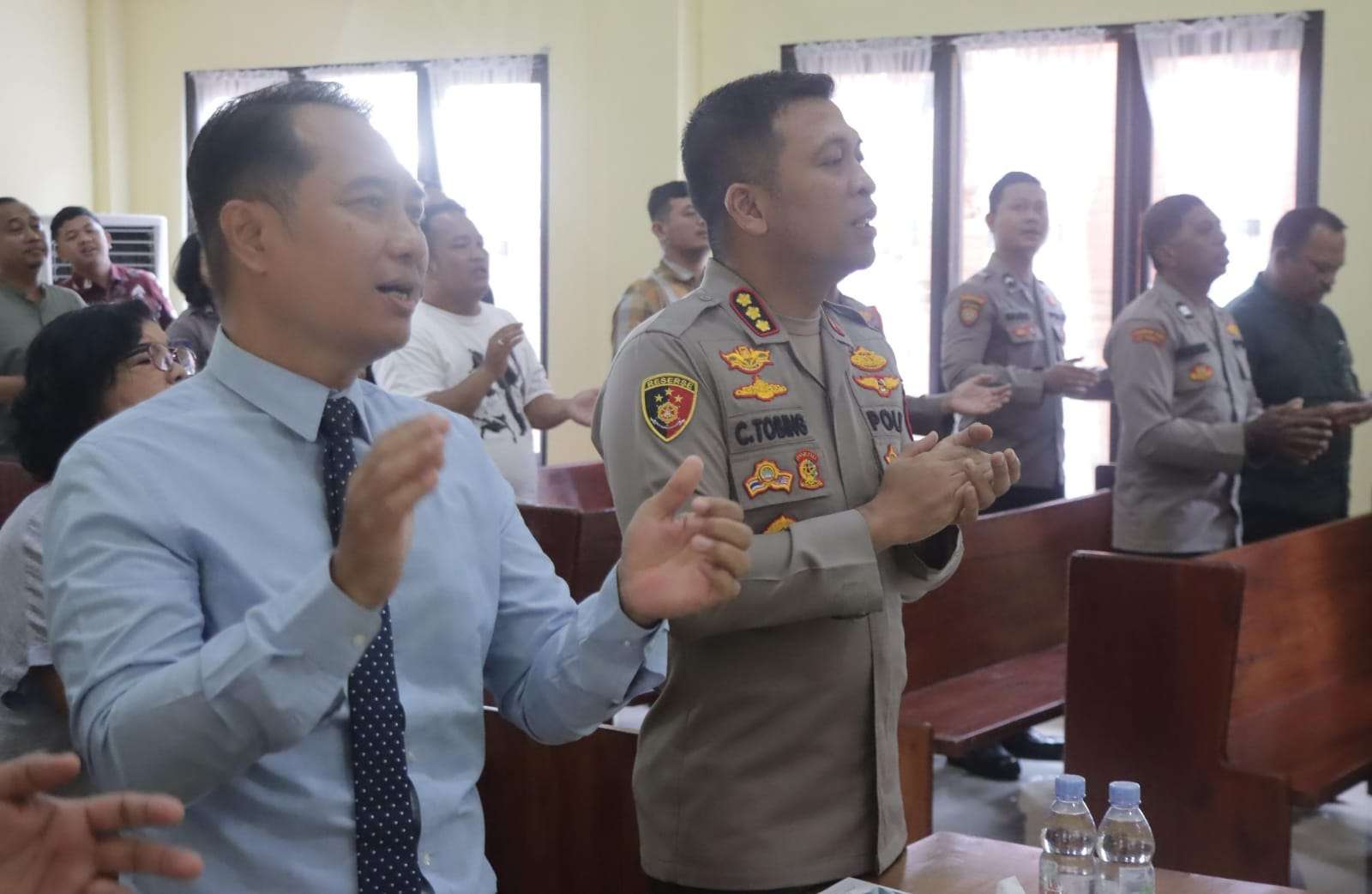 Sidoarjo, Indonesiajayanews.com – Kapolresta Sidoarjo Kombes. Pol. Christian Tobing bersama anggota yang beragama Kristen mengikuti kegiatan Binrohtal di Gereja Oikumene Polresta Sidoarjo, Jumat (27/3/2026).