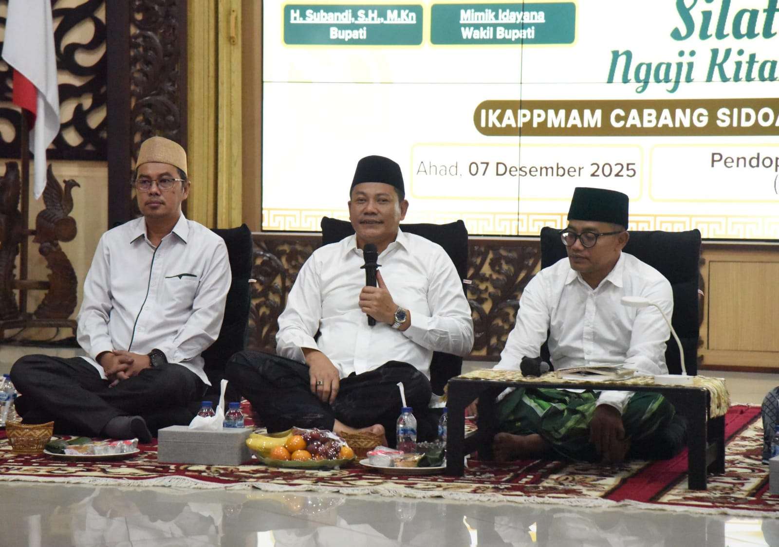 Sidoarjo, Indonesiajayanews.com – Bupati Sidoarjo H. Subandi menghadiri silaturrahim bersama Ikatan Keluarga Alumni Pondok Pesantren Mamba’ul Ma’arif (IKAPPMAM) Cabang Sidoarjo yang berlangsung di Pendopo Delta Wibawa, Minggu (7/12). Kegiatan tersebut berlangsung dalam suasana hangat, penuh kekeluargaan, dan sarat nilai kebersamaan.
