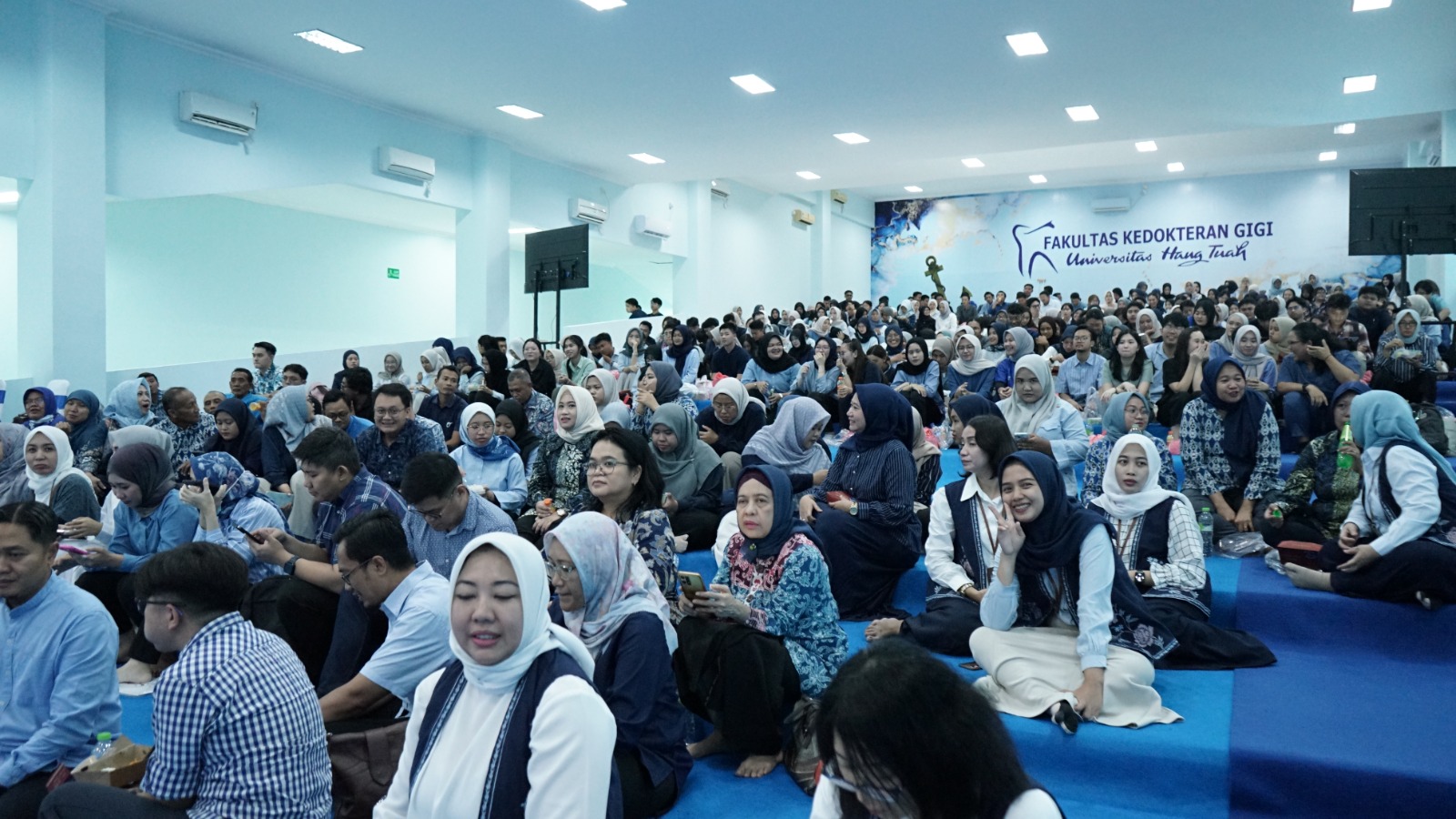 Sebelum acara dimulai, seluruh hadirin juga diajak mengheningkan cipta untuk mengenang Prof. Dr. Arifzan Razak, drg., M.Sc., Sp.Pros(K), salah satu guru besar senior FKG UHT yang berpulang pada usia 87 tahun.
