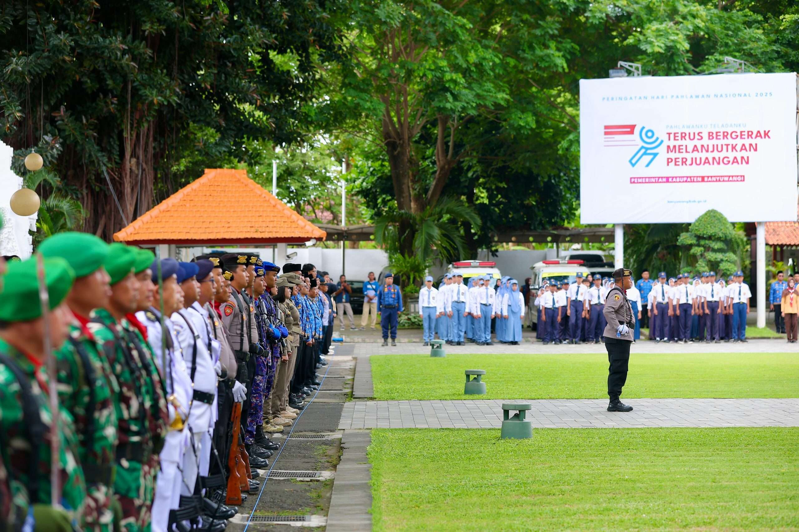 Banyuwang, Indonesiajayanews.com – Pemkab Banyuwangi menggelar upacara peringatan Hari Pahlawan di halaman Kantor Bupati Banyuwangi, pada Senin (10/11/2025). Dipimpin langsung Bupati Banyuwangi Ipuk Fiestiandani, upacara berlangsung lancar dan khidmat.