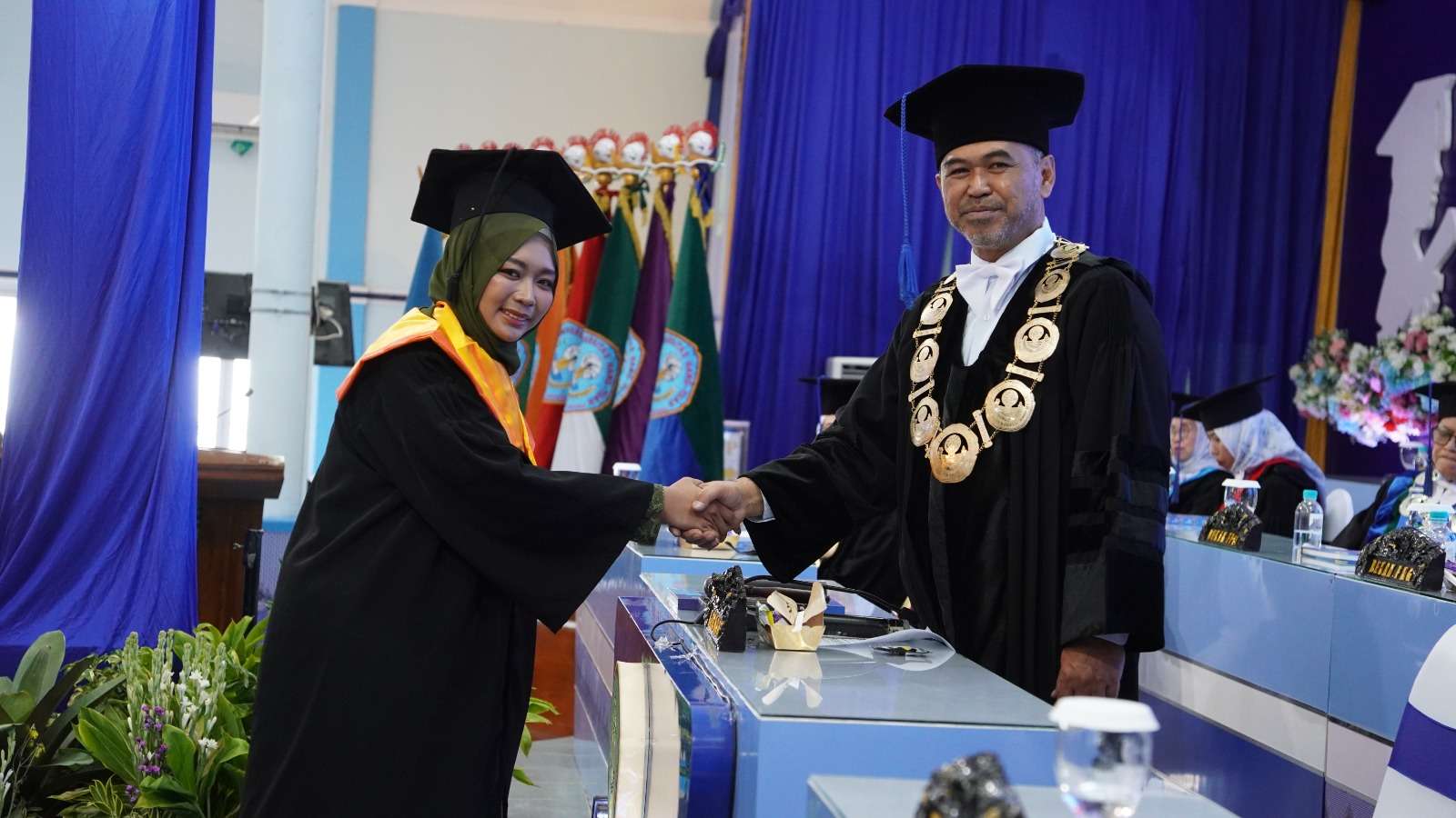 Kepada para wisudawan wisudawati, selamat mengarungi samudera kehidupan. Bawalah ilmu dan nilai-nilai yang telah kalian peroleh di kampus ini untuk membangun bangsa. Jadilah pemimpin yang berintegritas, inovatif, dan selalu mengutamakan kepentingan masyarakat. Hang Tuah pernah mengatakan: “Tak akan Melayu hilang di bumi”. Semboyan ini, yang juga dikenal dengan nama “Takkan Melayu Hilang di Dunia,” mengandung makna bahwa bangsa kita tidak akan pernah punah selama mereka menjunjung tinggi nilai-nilai luhur dan identitas mereka, terutama yang terkait dengan keyakinan.
