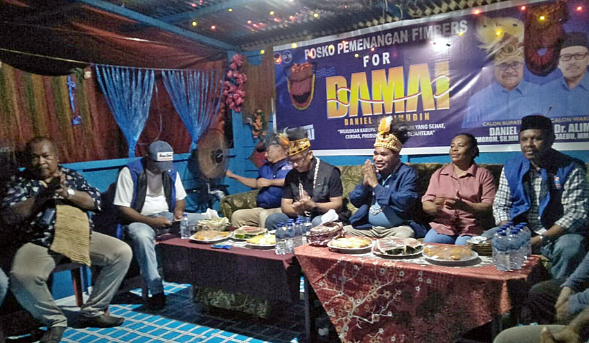 “Kemarin-kemarin, kami dari gunung 20 tahun sudah mendukung yang campuran-campuran (menjadi bupati), kaka Alfons Manibui, kaka Petrus Kasihiw mewakili pesisir. Sekarang, saudara-sudara dari pesisir wajib hukumnya mendukung kami yang ada di gunung,” ungkap Daniel Asmorom disambut pekik “betul” dari massa.
