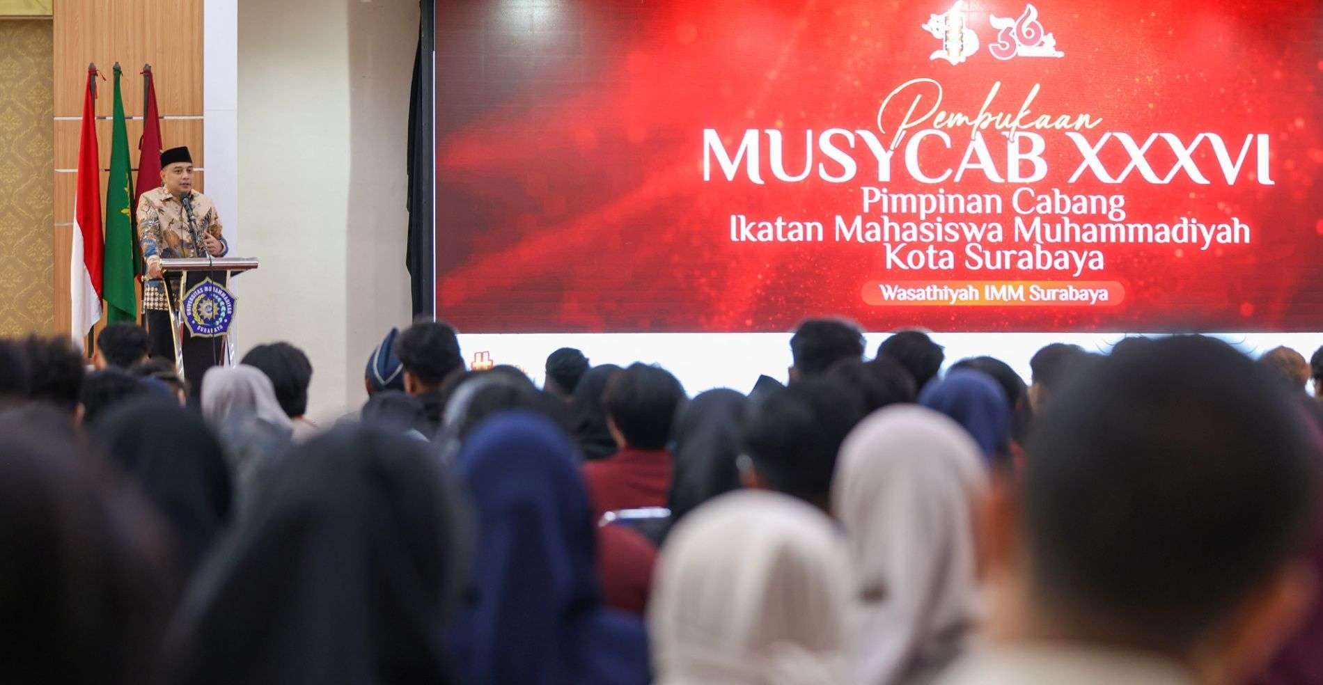Surabaya, Indonesiajayanews.com – Wali Kota Surabaya Eri Cahyadi menghadiri Musyawarah Cabang (Muscab) Ke-XXXVI Ikatan Mahasiswa Muhammadiyah (IMM) Kota Surabaya di Gedung Rektorat Universitas Muhammadiyah Surabaya (UMSURA), Sabtu (24/1/2026). Dalam Muscab tersebut dihadiri oleh Kepala Badan Riset dan Inovasi Daerah (BRIDA), Agus Imam Sonhaji hingga Rektor UMSURA Dr. Mundakir.