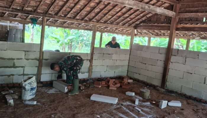 Bangkalan, Indonesiajayanews.com – Di tengah terik matahari Desa Gelis Dajah, Kecamatan Konang, Kabupaten Bangkalan, semangat gotong royong tampak hidup dalam kegiatan TNI Manunggal Membangun Desa (TMMD) ke-128. Jumat (24/4/2026), lima personel Satgas TMMD yang dipimpin Serda Amir terlihat bahu-membahu membantu pembangunan rumah tidak layak huni (RTLH) milik Ibu Mariti. Suasana penuh keakraban tercipta saat prajurit TNI bersama warga menyatu dalam kerja nyata demi menghadirkan hunian yang lebih layak.