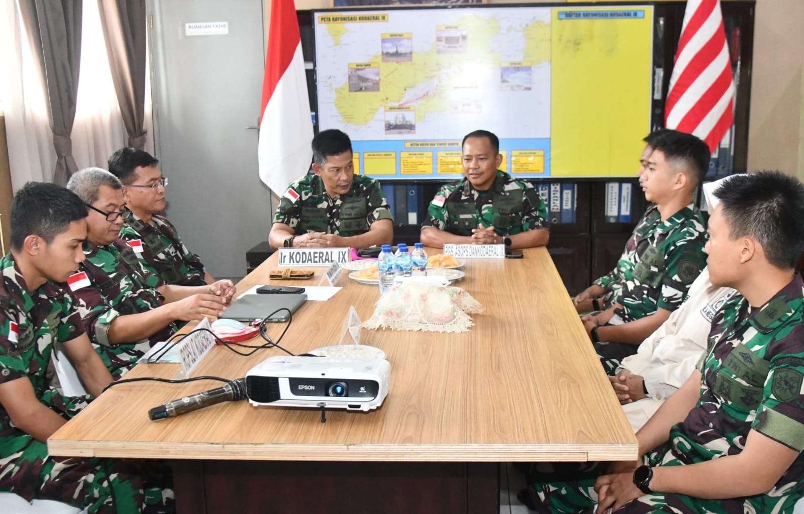Dalam kegiatan ini, Ir Kodaeral IX didampingi oleh Pgs. Asops Kodaeral IX Letkol Laut (P) Frejohn Da Costa, M.Tr.Opsla., beserta jajaran staf terkait yang turut mengikuti jalannya penutupan taklimat akhir.