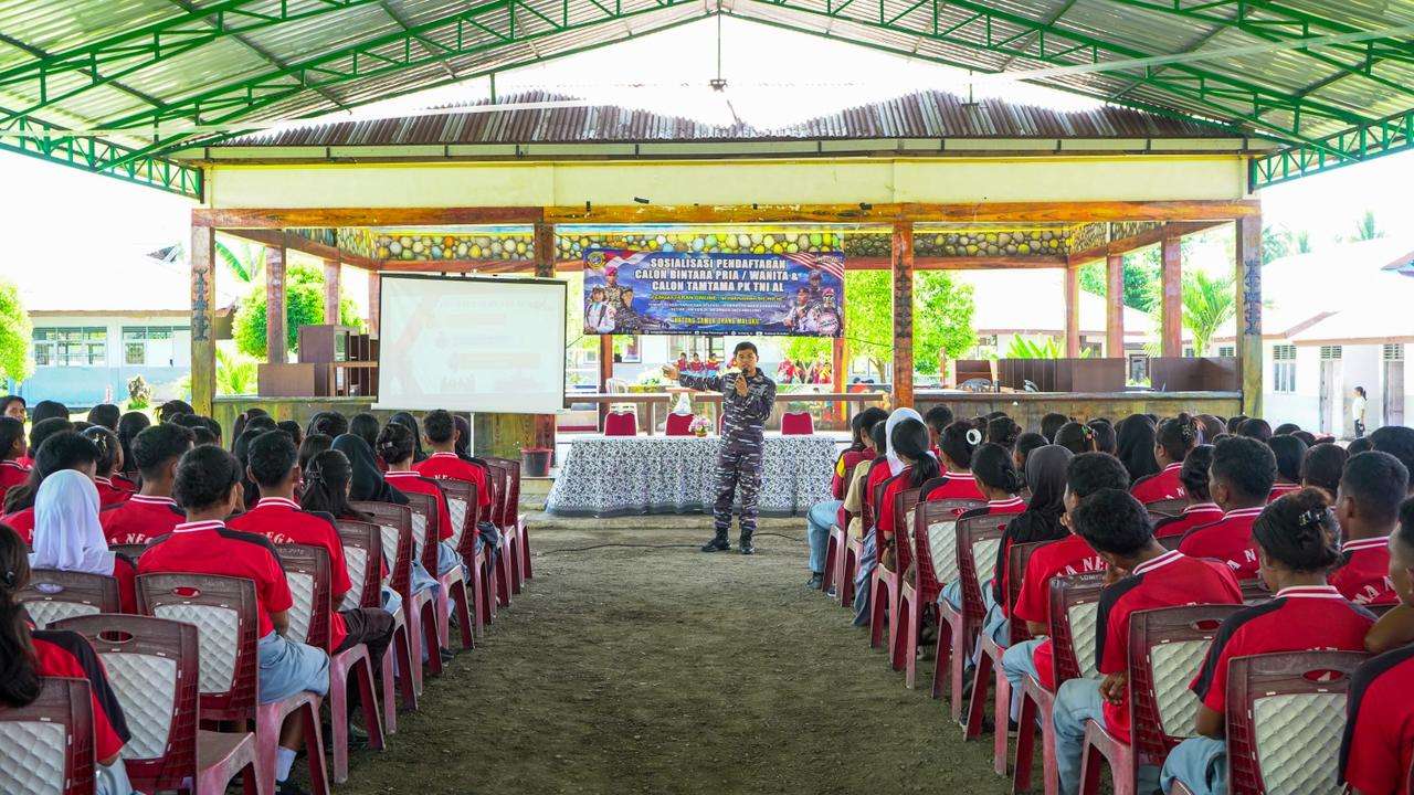 Guna menjaring bibit unggul dan pastikan seleksi penerimaan berjalan transfaran dari kalangan pelajar, Komando Daerah Angkatan Laut lX (Kodaeral IX) melaksanakan sosialisasi penerimaan calon prajurit TNI AL TA. 2026 di Wilayah Pesisir Pulau Seram Bagian Barat pada Jumat (30/1/2026).