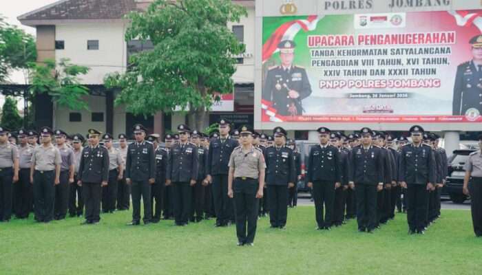 Jombang, Indonesiajayanews.com – Kepolisian Resor (Polres) Jombang menggelar upacara penganugerahan Tanda Kehormatan Satyalancana Pengabdian kepada personel Polri yang telah menunjukkan dedikasi, loyalitas, serta pengabdian dalam pelaksanaan tugas kepolisian, Senin (26/1/2026).
