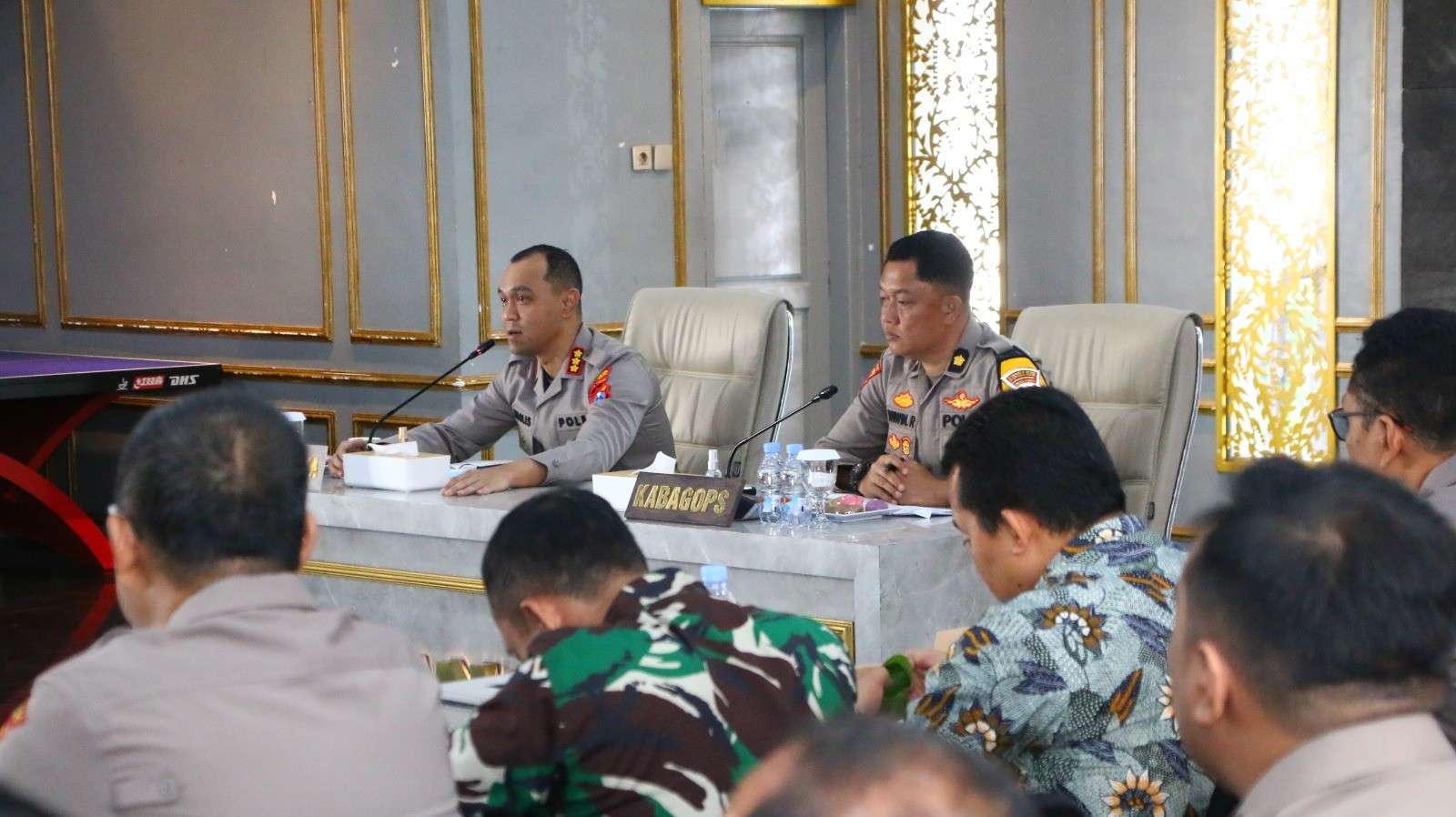 Pada H-1 kegiatan Mujahadah Kubro 1 Abad NU, Kapolresta Malang Kota, Kombes Pol Putu Kholis Aryana didampingi Kabag Ops Kompol Wiwin Rusli memimpin Tactical Floor Game (TFG) di Ballroom Sanika Satyawada, Jumat (06/02/2026).
