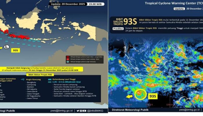 3. Update Monitoring Bibit Siklon Tropis 93S di Samudra Hindia sebelah Selatan Jawa Barat