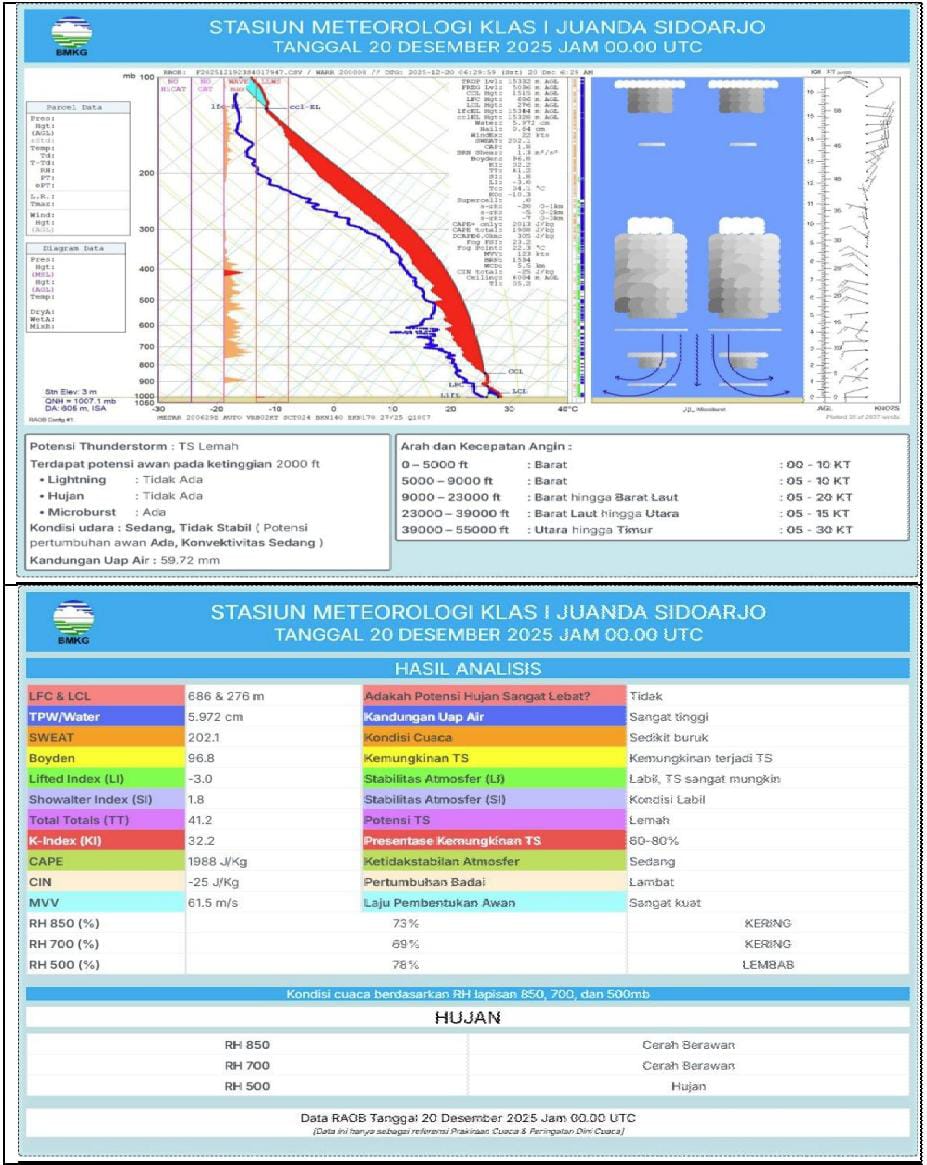 4. Hasil analisis pengamatan udara atas menunjukan wilayah Jawa Timur dalam kondisi labil dengan konvektif sedang.