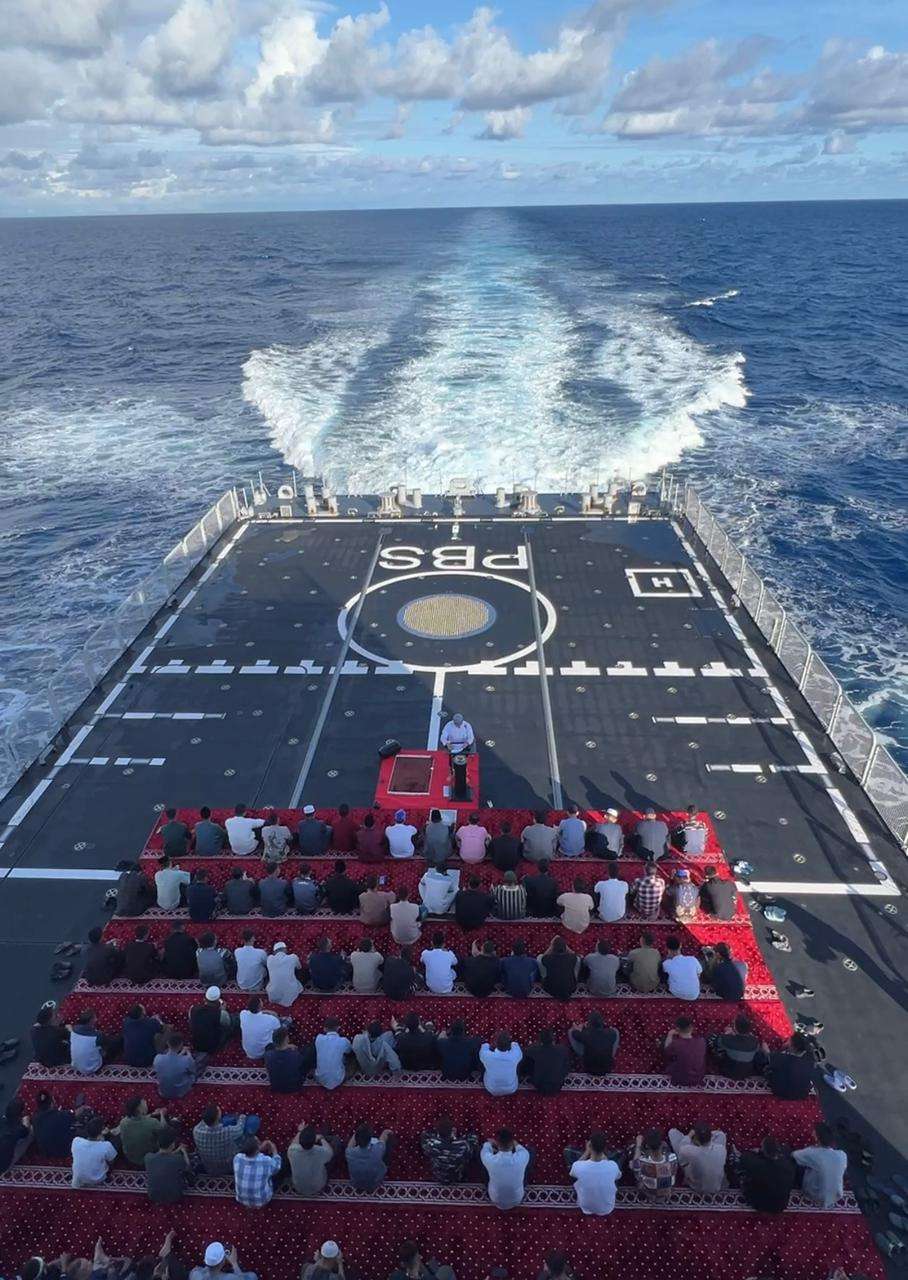 Khidmat di Tengah Samudera, Prajurit KRI Prabu Siliwangi-321 Laksanakan Sholat Idul Fitri di Samudera Hindia