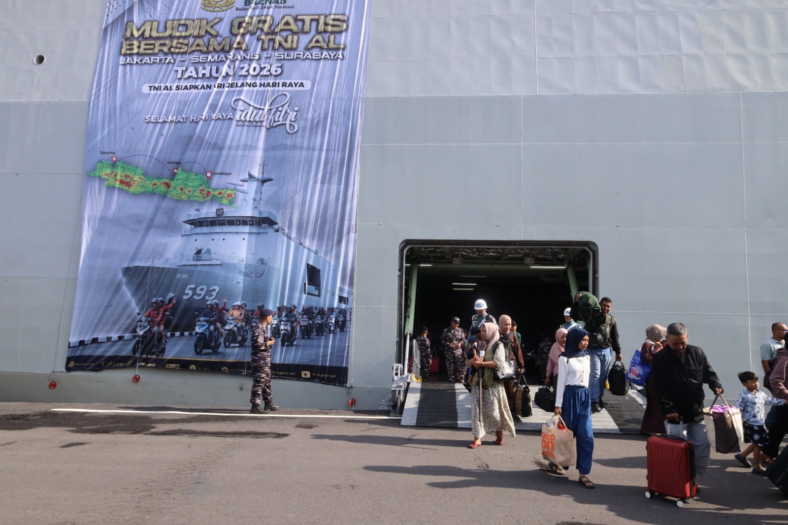 Melalui pengerahan Kapal Perang Republik Indonesia (KRI), TNI AL membuka akses mudik gratis dengan beberapa rute utama, di antaranya Jakarta–Semarang–Surabaya serta Jakarta–Bangka Belitung, yang mendapat sambutan antusias dari masyarakat.