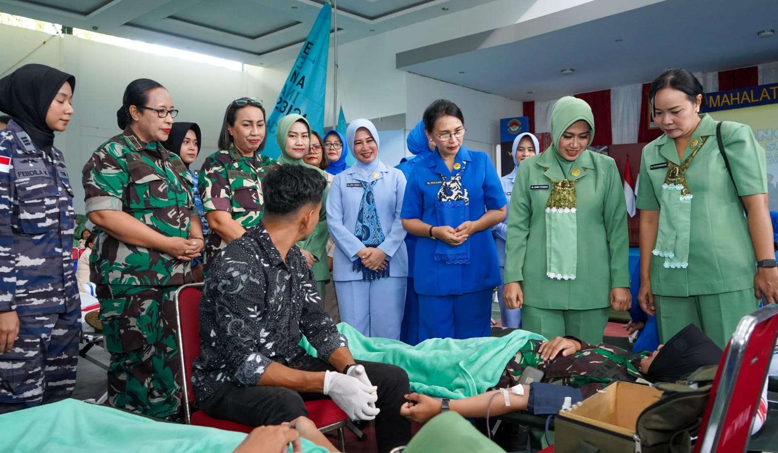 Komando Daerah TNl Angkatan Laut (Kodaeral) lX menjadi tuan rumah dalam aksi sosial Donor Darah Serentak dalam rangka Apel Bersama Wanita TNI dan HUT ke-62 Dharma Pertiwi tahun 2026 wilayah Ambon yang digelar di Gedung Dr. J. Leimena, Mako Kodaeral lX, Halong, Kota Ambon, Maluku, Kamis (2/4/2026).