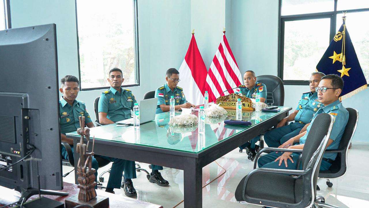 Tampak hadir dalam Vicon yang digelar di di Ruang Kerja Komandan Kodaeral IX, Halong, Kota Ambon, Maluku ini antara lain Wadan Kodaeral lX, Laksma TNl Dr. Muhammad Risahdi, Sahli D Jemen, Kolonel Laut (KH) Slamet Basuki dan tim.