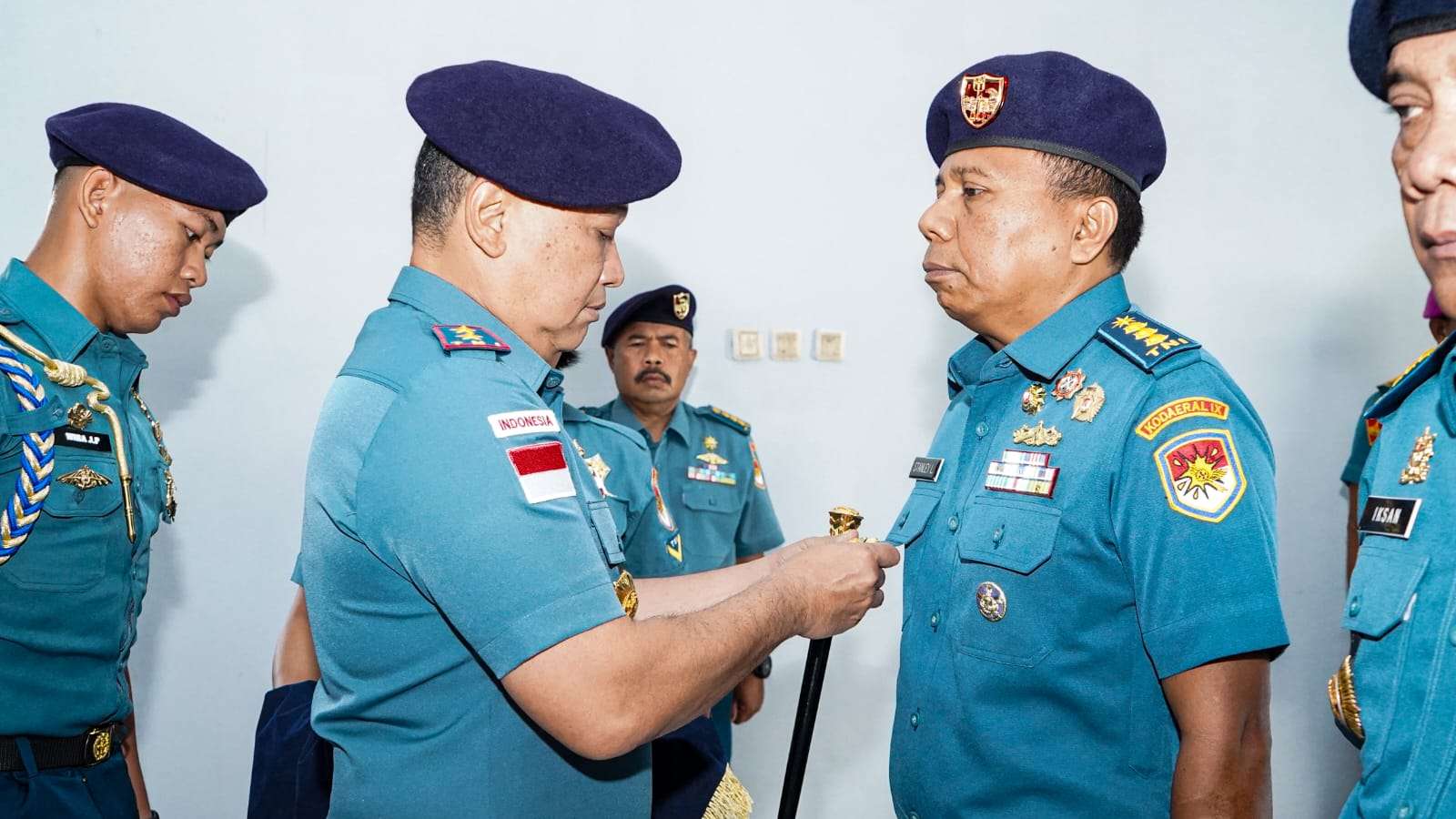Komandan Komando Daerah TNl Angkatan Laut (Dankodaeral) IX Laksamana Muda TNI Hanarko Djodi Pamungkas, S.H., memimpin Acara Pengukuhan dan Penyerahan Jabatan tujuh pejabat strategis dijajaran Kodaeral IX yang digelar di Lobby Atas Mako Kodaeral IX, Halong, Kota Ambon, Maluku pada Senin (6/4/2026).