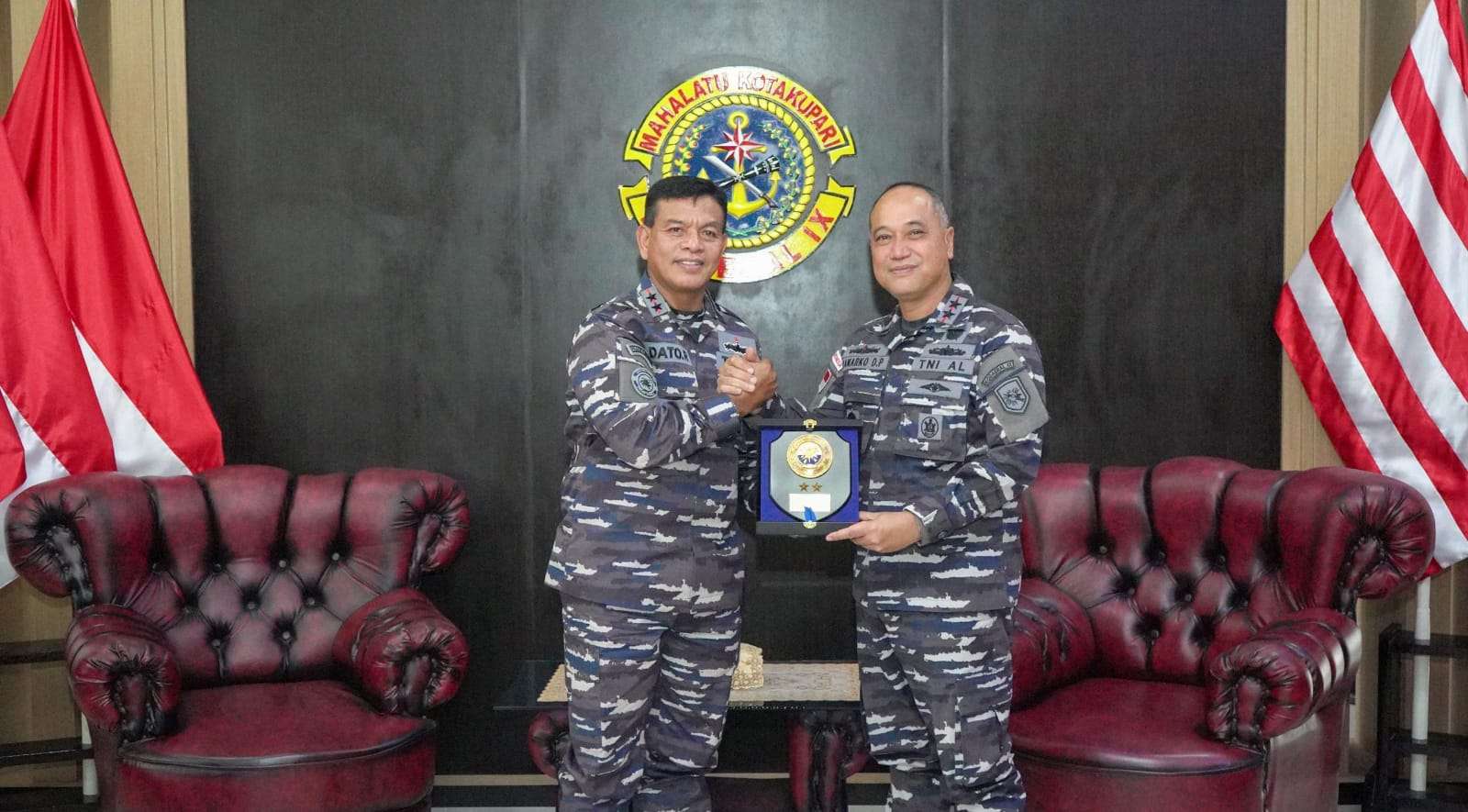 Komandan Komando Daerah TNl Angkatan Laut lX (Dankodaeral lX), Laksda TNl Hanarko Djodi Pamungkas, S.H. menerima Kunjungan Kerja Panglima Komando Armada lll (Pangkoarmada lll), Laksda TNl Dato Rusman SN, S.E., M.Si., M.Tr.Opsla di Lobby Utama Mako Kodaeral lX, Halong, Kota Ambon, Maluku pada Senin (23/2/2026).
