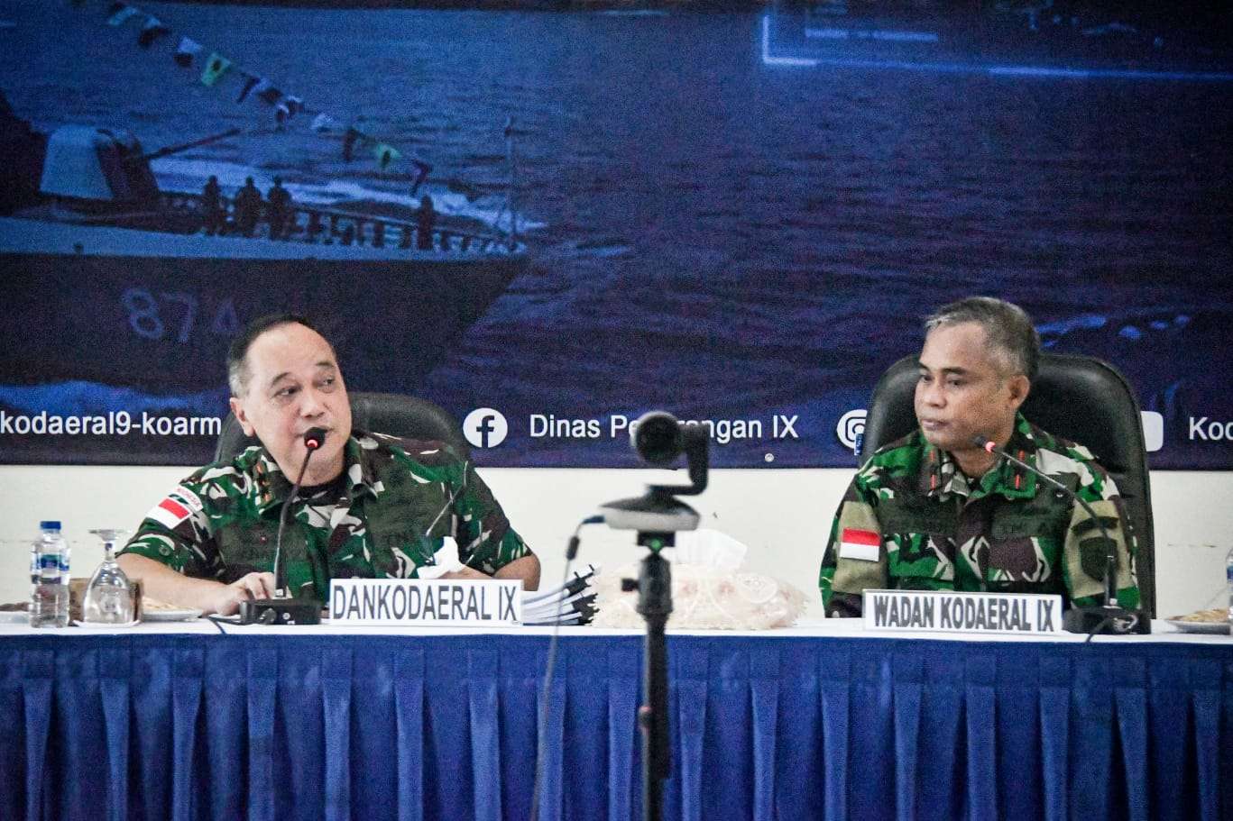 Komandan Komando Daerah TNl Angkatan Laut (Dankodaeral) lX, Laksda TNl Hanarko Djodi Pamungkas, S.H. meninjau pelaksanaan Tabletop Exercise (TTX) penyiapan tujuh Rencana Operasi (RO) Kodaeral lX yang dipusatkan di Gedung Arika Waku, Srena Kodaeral IX, Halong, Kota Ambon, Maluku, Jumat (10/4/2026).