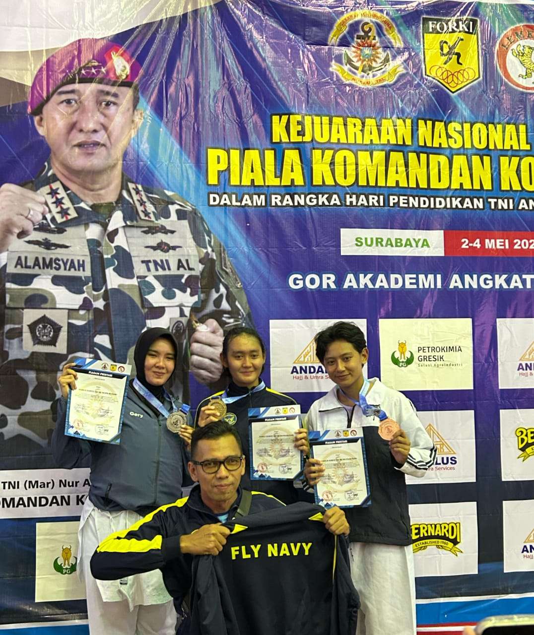 MSNews.com, Surabaya – Dihari ketiga gelaran Kejuaraan Nasional (Kejurnas) Karate Lemkari Piala Komandan Kodiklatal dalam rangka Hari Pendidikan TNl Angkatan Laut (Hardikal) ke-79 Tahun 2025, Kontingen Pusat Penerbangan TNl AL (Puspenerbal) berhasil menyabet dua medali diajang nasional yang digelar Kodiklatal di GOR Jala Krida Wacana AAL, Bumimoro, Surabaya, Minggu (4/5/2025).