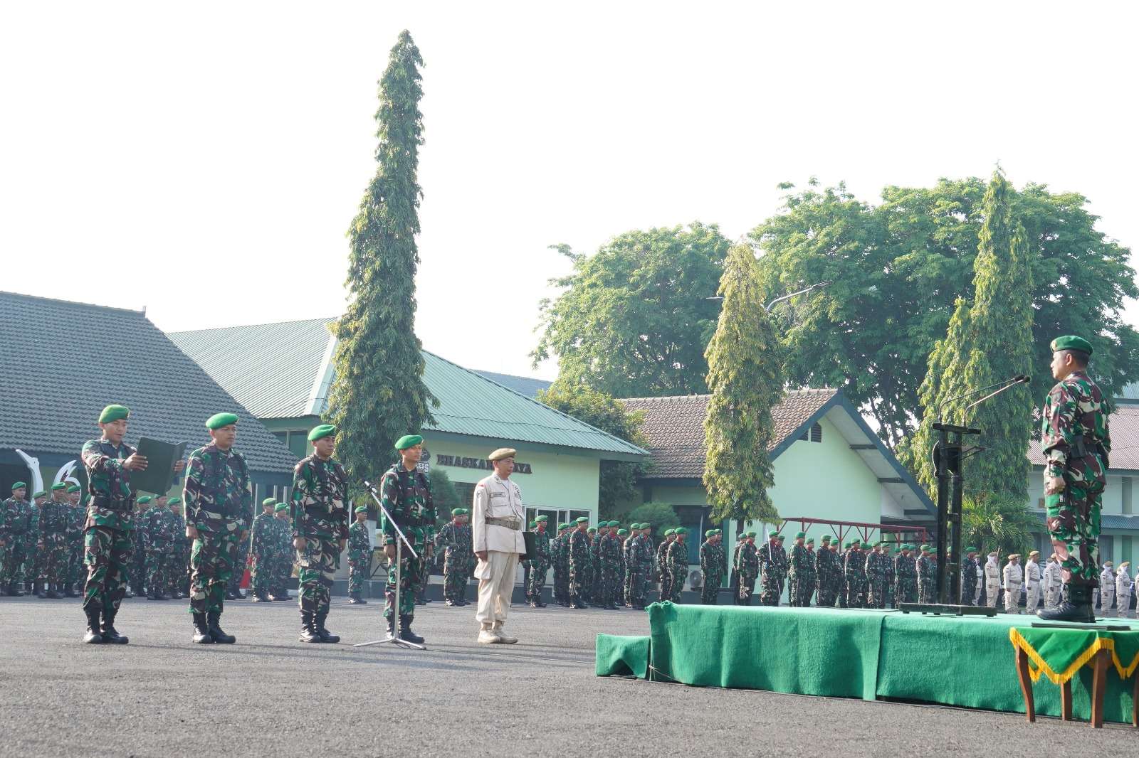 Surabaya, Indonesiajayanews.com – Korem 084/Bhaskara Jaya menggelar Upacara Bendera rutin dalam rangka memperingati tanggal 17 setiap bulannya di Lapangan Upacara Makorem, Jalan Ahmad Yani No. 1, Wonocolo, Surabaya, pada Rabu (17/9/2025). Bertindak sebagai Inspektur Upacara (Irup) adalah Kepala Staf Korem (Kasrem) 084/Bhaskara Jaya, Kolonel Inf Nico Reza H. Dipura, yang dalam kesempatan tersebut membacakan amanat dari Pangdam V/Brawijaya.