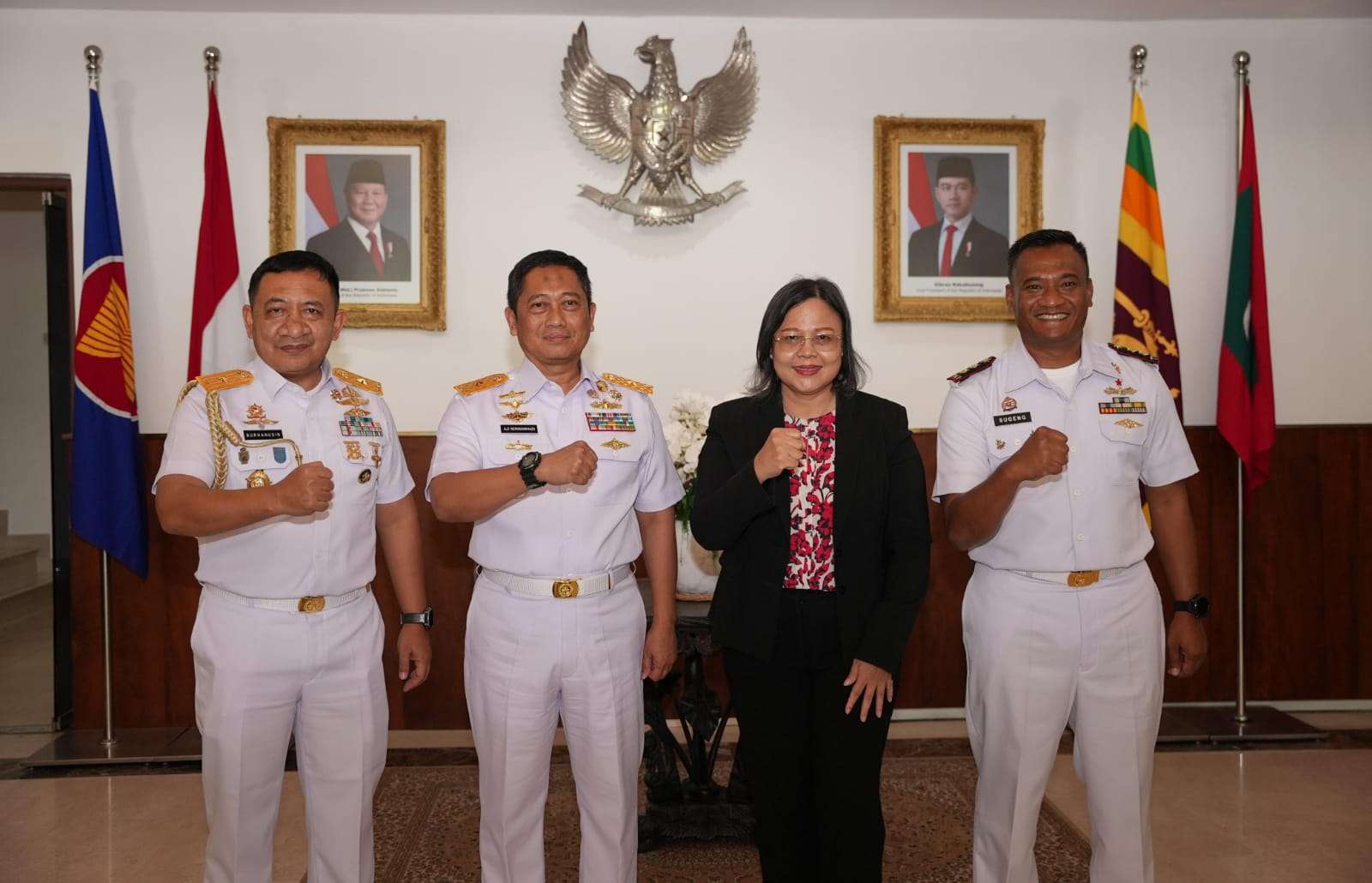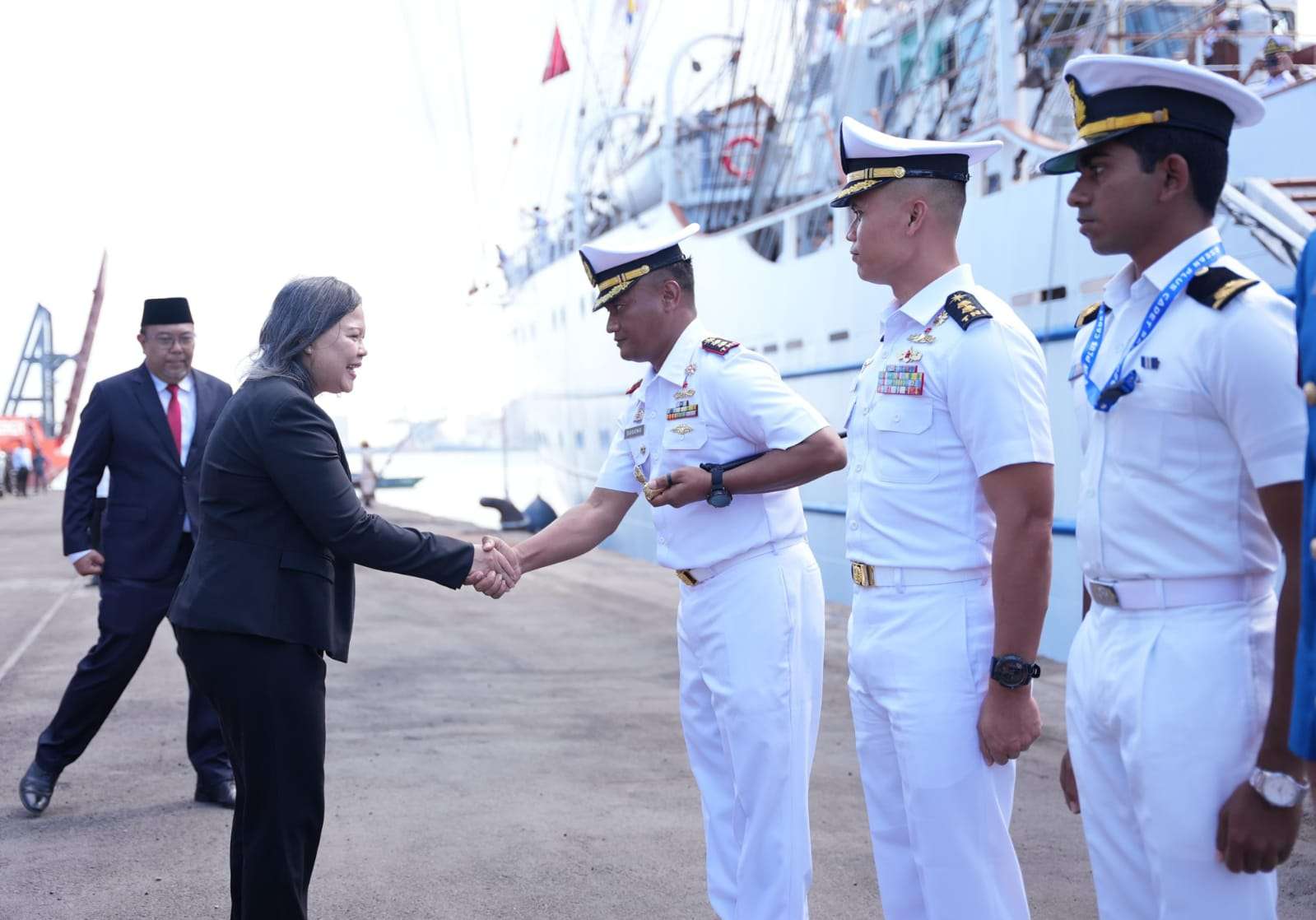 Kedatangan KRI Bima Suci yang membawa 79 Taruna AAL serta delegasi Asean Plus Cadet Sail (APCS) 2026 disambut dengan penuh antusias oleh Duta Besar Republik Indonesia untuk Sri Lanka Dewi Gustiana Tobing, didampingi sejumlah pejabat TNI AL dan perwakilan Indonesia di Colombo, di antaranya Waaslog Kasal Laksma TNI Aji Nurmanihadi, Stafsus Kasal Laksma TNI Bambang Dharmawan, Athan RI Brigjen TNI Mar Burhanuddin, Paban V Sopsal Kolonel Rasyid, Asathan RI Mayor Adm Wisnu Yudhantara, serta staf KBRI Colombo.