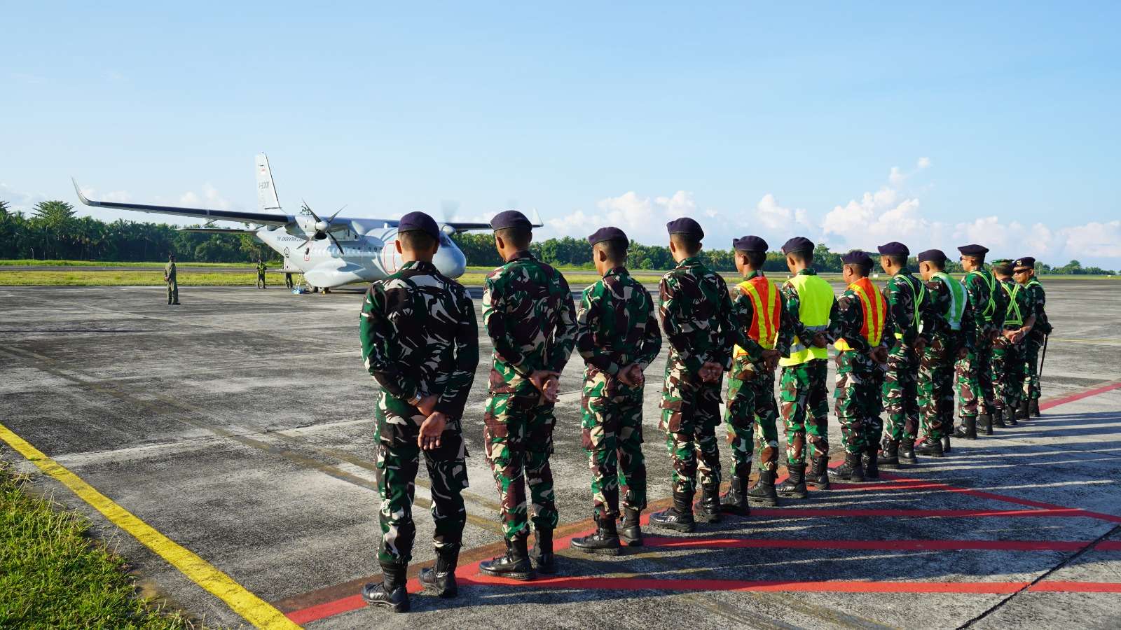 Guna melanjutkan Operasi Tameng Papua-26 Tahap II, Pesawat Udara (Pesud) TNI AL CN235-220 Maritime Patrol Aircraft (MPA) P-8301 dibawah binaan Puspenerbal lepas landas (take off) dari Bandara Pattimura Ambon, Maluku pada Senin (20/4/2026).