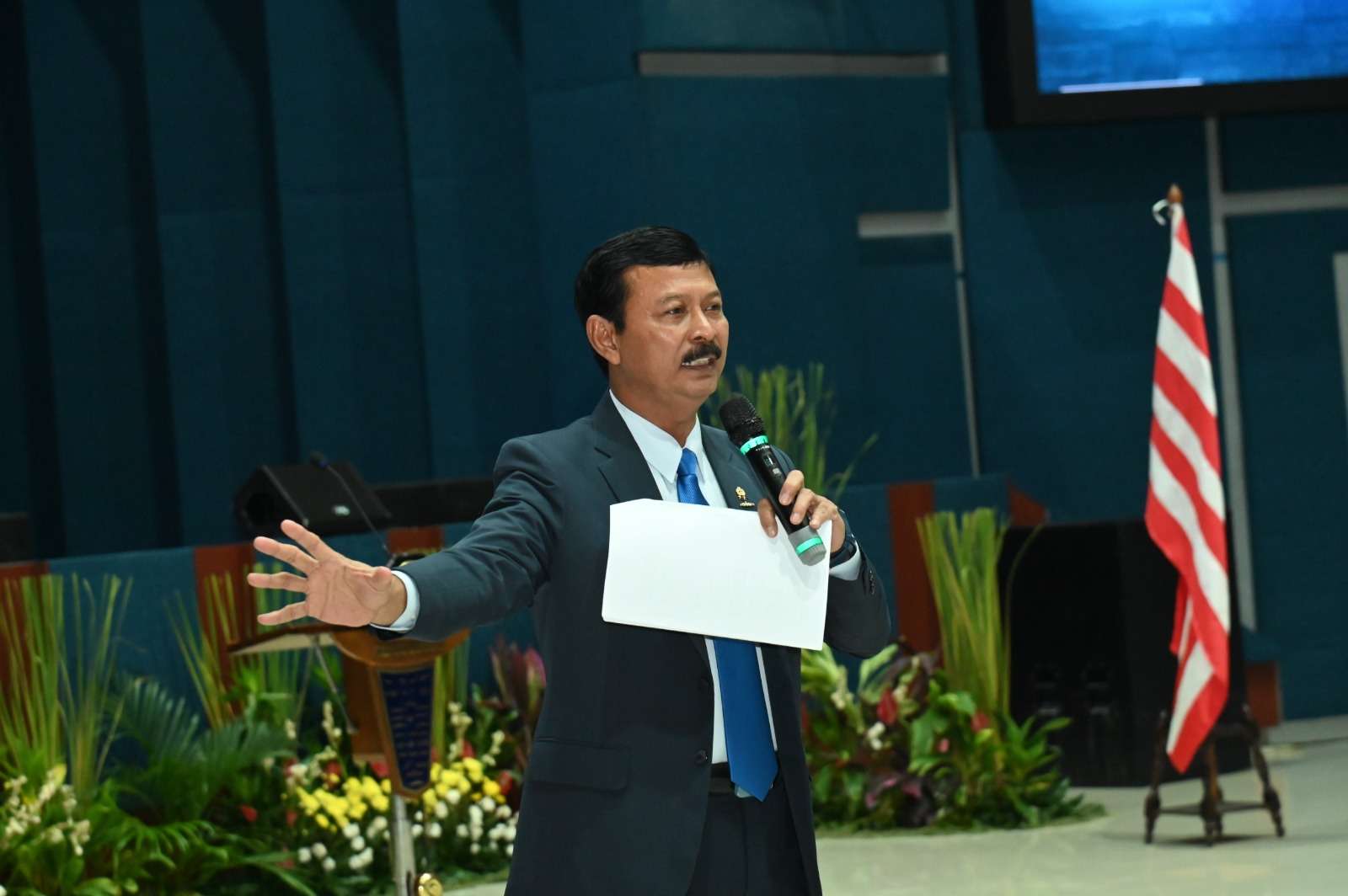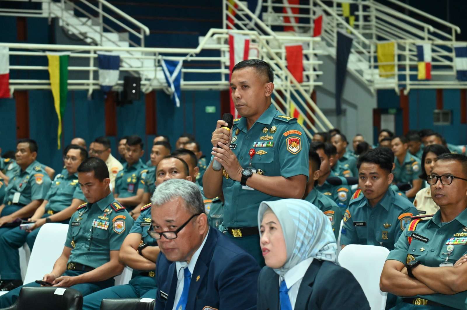 Dalam sesi pembekalan materi, Wakil Rektor II Dr. Iwan Isnurwanto, S.H., M.A.P., M.Tr.(Han). memberikan pemahaman mendalam tentang Kepemimpinan yang relevan dengan tantangan dunia kampus maupun dunia profesional. Materi ini mengajak para mahasiswa untuk memahami esensi kepemimpinan visioner yang berbasis integritas, tanggung jawab, dan kemaritiman sebagai ciri khas Universitas Hang Tuah.