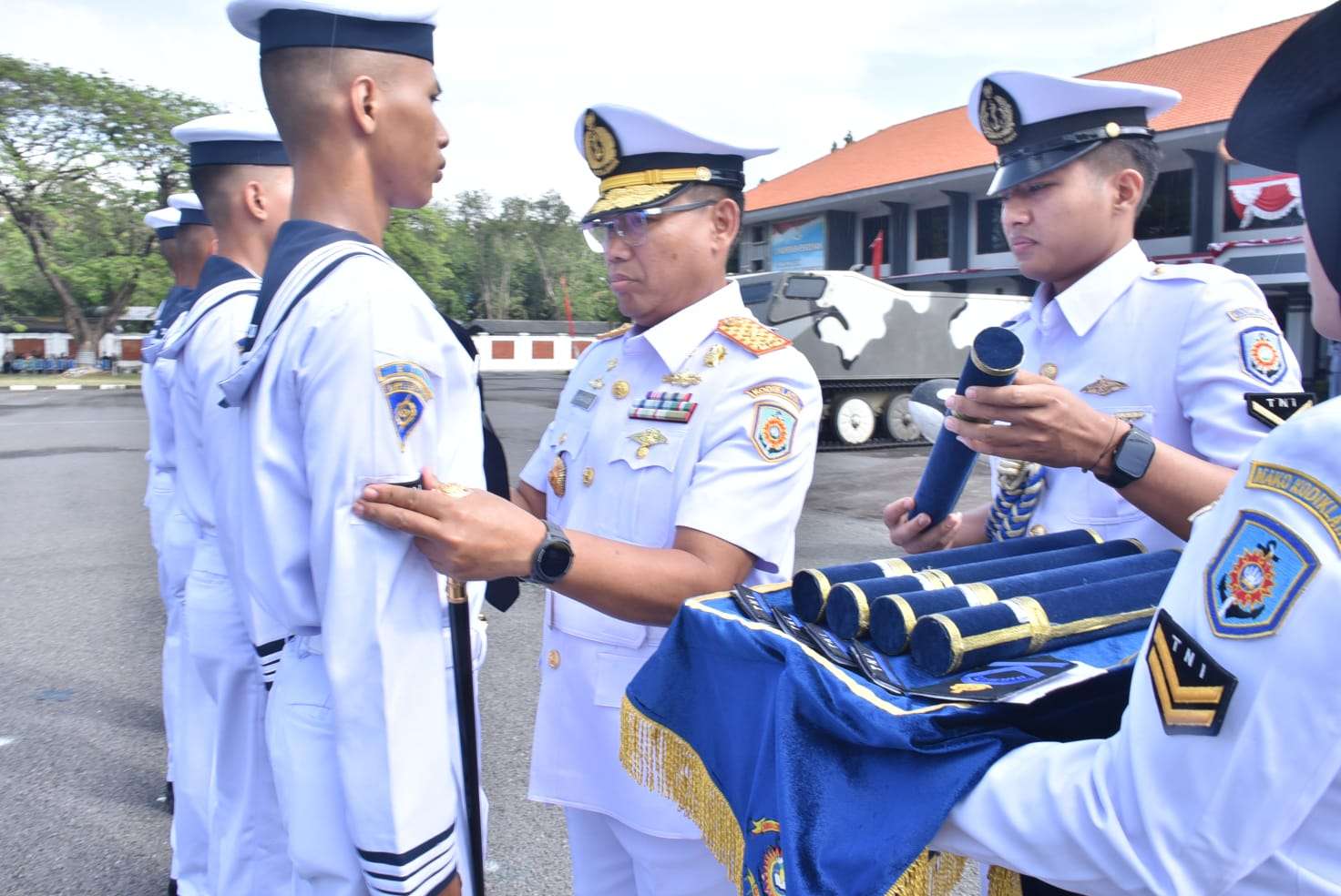 Bertindak sebagai Komandan Upacara (Danup) Letkol Laut (S) Eka Muktiono, S.T., M.A.P., M.Tr.Opsla., yang sehari-hari menjabat sebagai Danseta Pusdikbanmin. Para siswa yang dinyatakan lulus berasal dari lima Pusat Pendidikan (Pusdik), yakni Pusdiktek (132 siswa), Pusdikbanmin (120 siswa), Pusdiklek (39 siswa), Pusdikkes (15 siswa), dan Pusdikpomal (20 siswa).