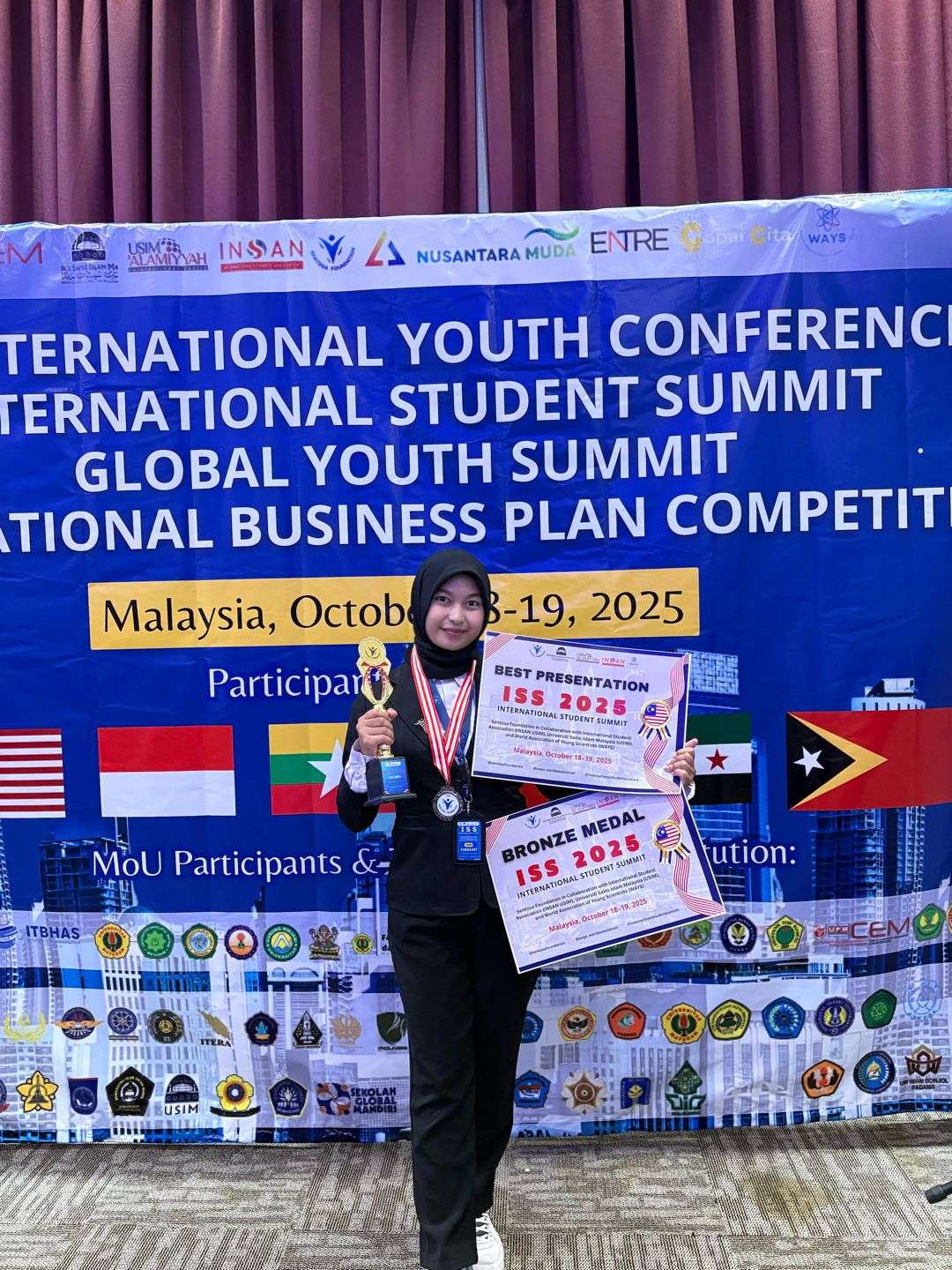 Sementara itu, dalam ajang International Scientific Summit yang digelar di lokasi yang sama, mahasiswa Faradilla Aura Vanesha Putri juga berhasil menorehkan prestasi gemilang dengan meraih Bronze Medal bidang Kesehatan sekaligus mendapatkan penghargaan Best Presentation atas kemampuan presentasi ilmiahnya yang dinilai sangat unggul di antara peserta internasional.
