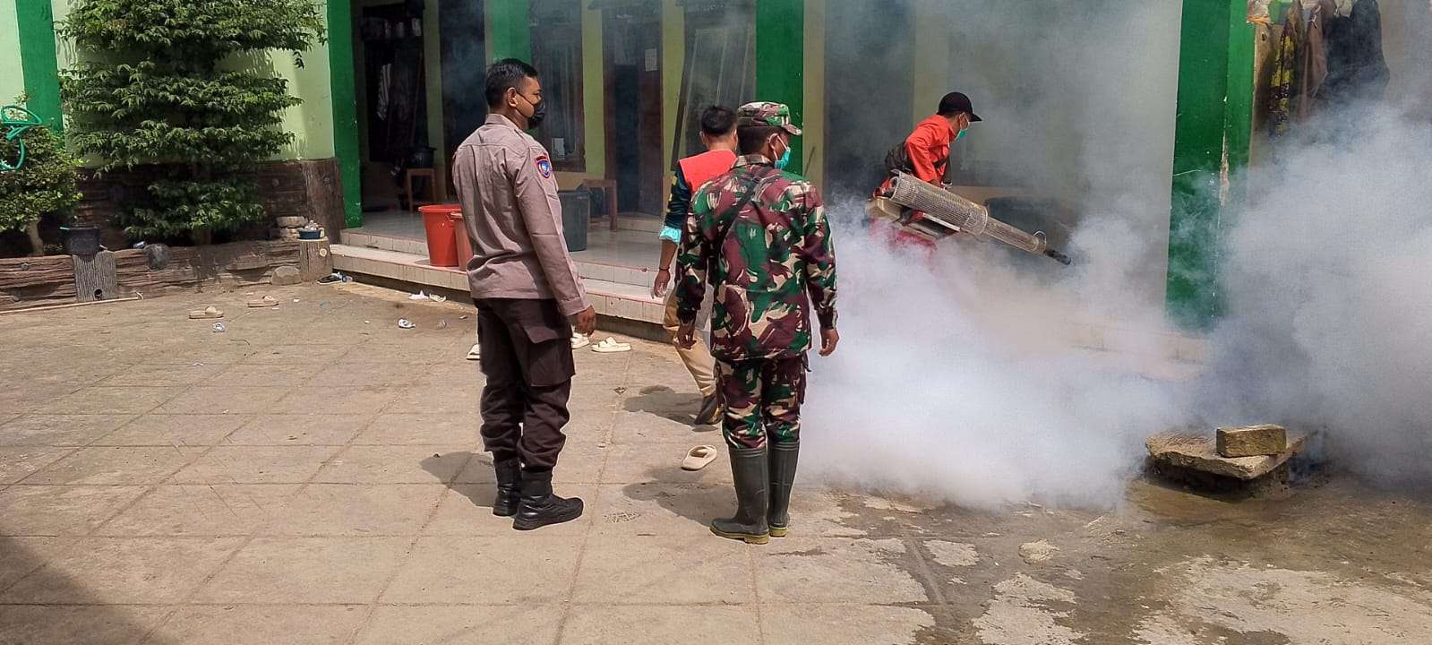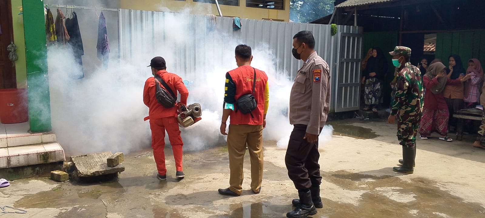 Kegiatan fogging ini dilakukan sebagai upaya pencegahan penyebaran penyakit Demam Berdarah Dengue (DBD), khususnya di lingkungan pondok pesantren yang memiliki aktivitas dan mobilitas tinggi. Kehadiran Babinsa dan Bhabinkamtibmas bertujuan untuk memberikan pendampingan, pengamanan, serta memastikan kegiatan berjalan dengan tertib dan lancar.