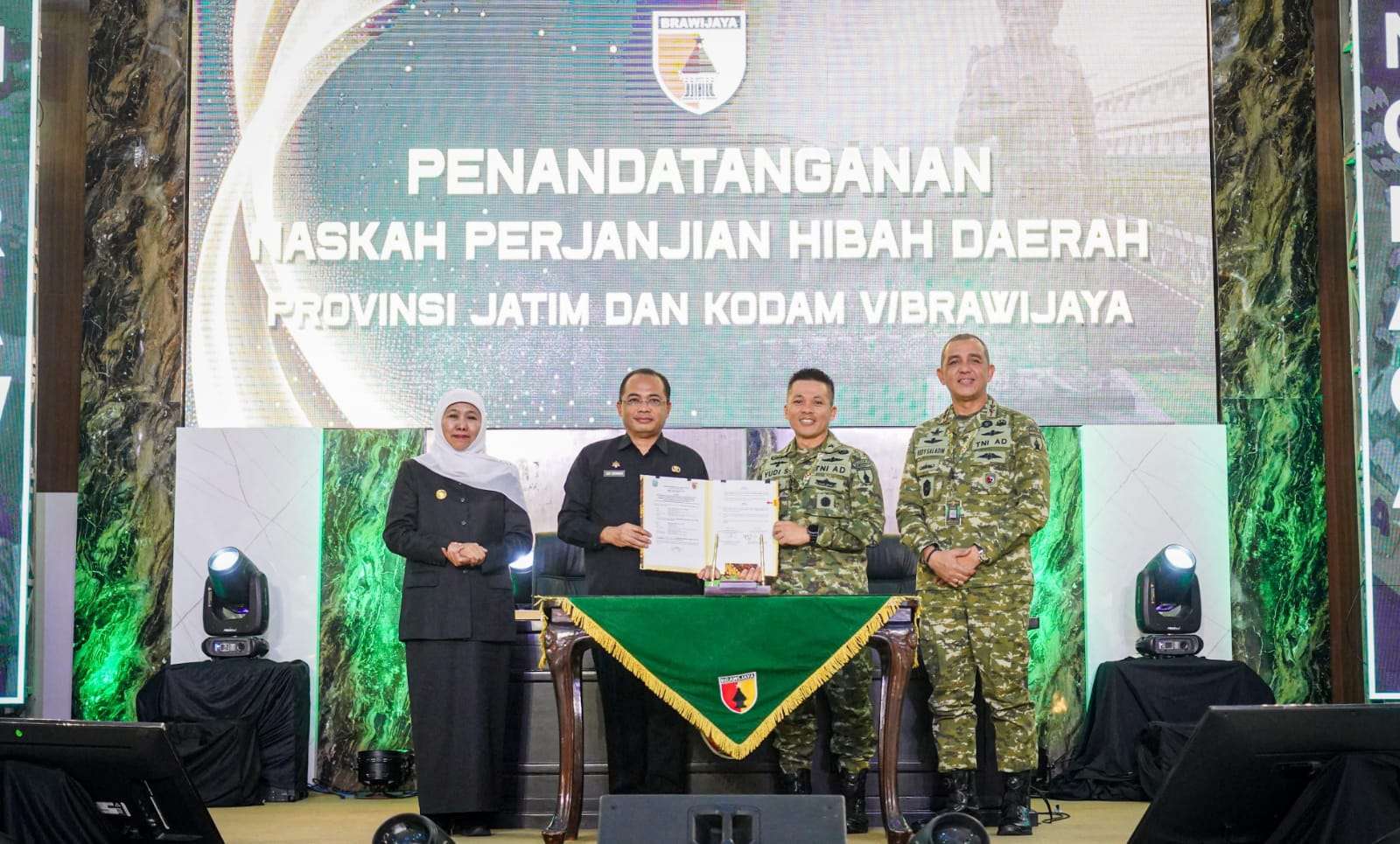 Rangkaian kegiatan mencakup peninjauan sasaran hibah 2025 bersama Gubernur Jawa Timur, meliputi renovasi Makodam V/Brawijaya, rehab garasi Pomdam V/Brawijaya, renovasi gapura Jl. Kesatrian, serta renovasi Rumdis Gayatri dan penyerahan kunci secara simbolis. Selanjutnya dilakukan penandatanganan NPHD oleh Asrendam Kasdam V/Brawijaya dan Kabakesbangpol Provinsi Jatim Bpk. Eddy Supriyanto, S.STP., M.PSDM., disertai sesi foto bersama, serta ceramah agama bertema hubungan puasa dan kesalehan sosial oleh Prof. Dr. H. Nasir ElHaq Abadi, LC., M.H.