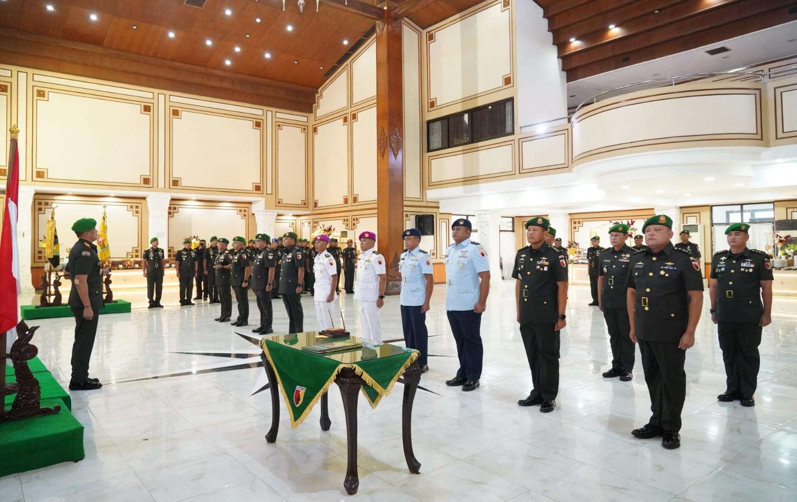 SURABAYA, Indonesiajayanews.com – Pangdam V/Brawijaya, Mayjen TNI Rudy Saladin, M.A., memimpin jalannya kegiatan serah terima jabatan Danrindam dan Pejabat Golongan IV/Kolonel Kodam V/Brawijaya serta Tradisi Warga Kodam V/Brawijaya yang berlangsung di Gedung Balai Prajurit Makodam V/Brawijaya, Rabu (14/01/2026).