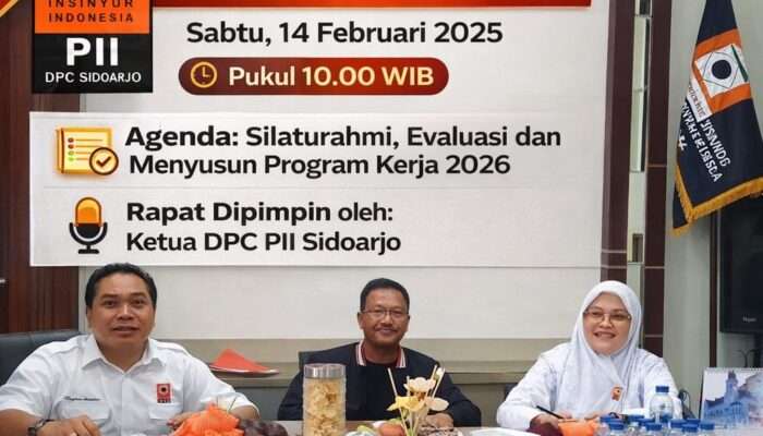 SIDOARJO – Indonesiajayanews.com Pengurus Cabang (PC) Persatuan Insinyur Indonesia (PII) Kabupaten Sidoarjo menggelar rapat silaturahmi dan evaluasi program kerja, Sabtu (14/2/2025), pukul 10.00 WIB sd selesai.