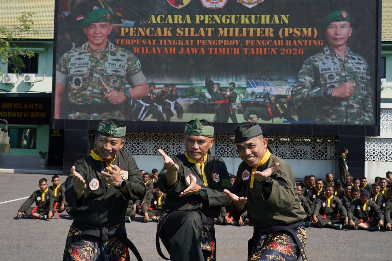 SURABAYA, Indonesiajayanews.com – Kodam V/Brawijaya resmi mengukuhkan kepengurusan Pencak Silat Militer (PSM) tingkat provinsi hingga ranting sebagai langkah strategis memperkuat kemampuan bela diri prajurit. “PSM menjadi wadah pembinaan terarah dan berkelanjutan bagi prajurit profesional,” tegas Kadisjasad.