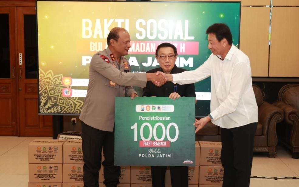 SURABAYA, Indonesiajayanews.com – Kepolisian Daerah Jawa Timur menerima penyerahan bantuan sosial dari Yayasan Bakti Persatuan Yayasan Bakti Persatuan berupa 1.000 paket sembako di Lobi Gedung Tribrata Mapolda Jatim, Selasa (24/2/2026).