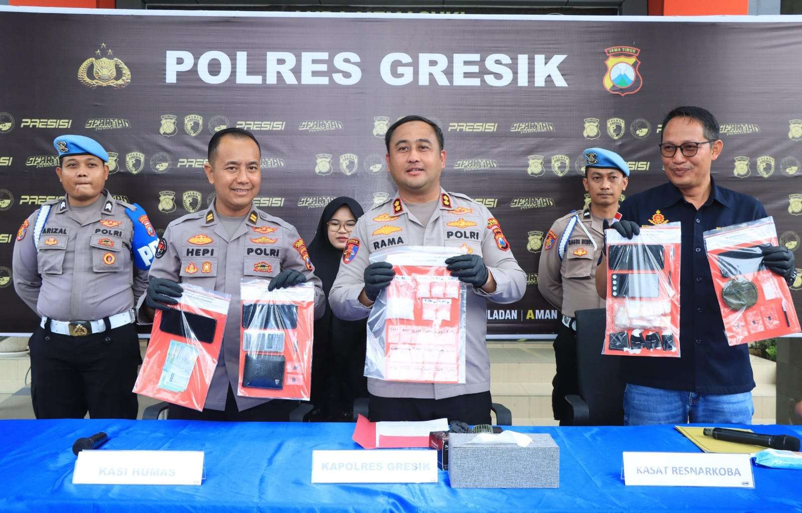 Melalui Satresnarkoba, Polres Gresik Polda Jatim berhasil membongkar jaringan pengedar sabu antar- kota.