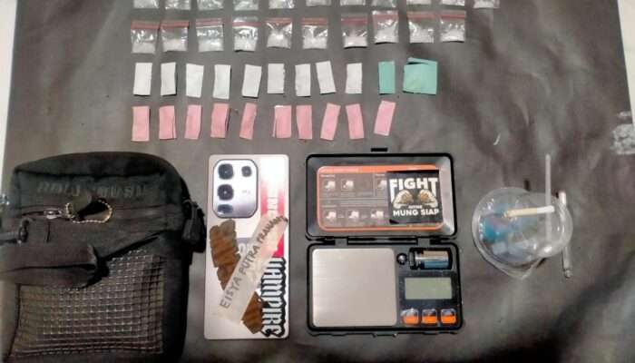 Selain itu, turut diamankan sejumlah barang bukti lain seperti alat hisap, pipet kaca, timbangan digital, hingga ponsel yang diduga digunakan untuk transaksi.
