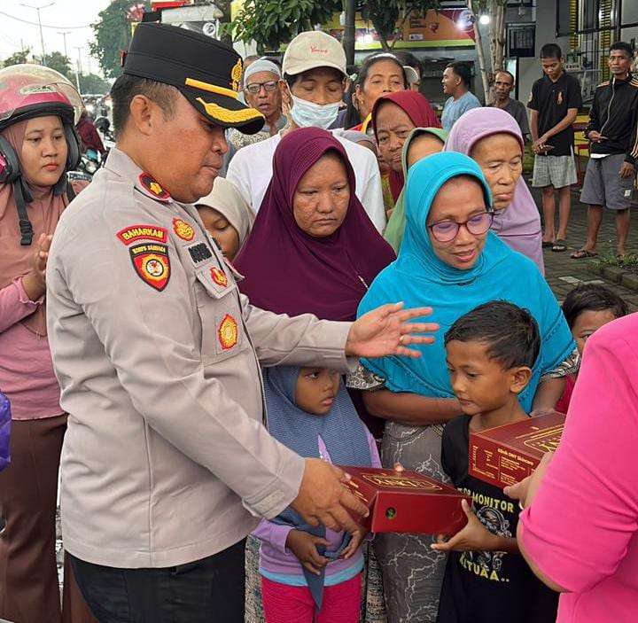 “Bagi takjil ini merupakan wujud kepedulian Polri terhadap masyarakat, khususnya bagi mereka yang masih berada di perjalanan saat waktu berbuka puasa tiba,” ujar Kompol A. Agung GPW. Selain membagikan makanan berbuka, personel juga menyampaikan pesan-pesan kamtibmas agar situasi wilayah tetap aman dan kondusif selama Ramadhan.