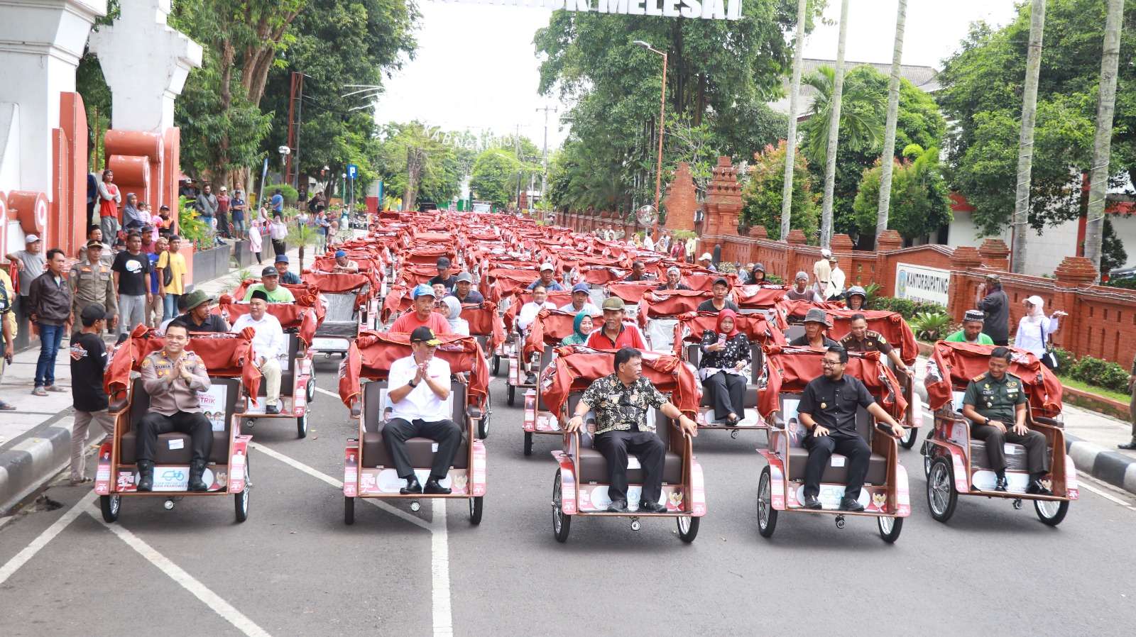 Bantuan tersebut diberikan kepada para tukang becak lanjut usia sebagai bagian dari program peningkatan kesejahteraan dan modernisasi transportasi ramah lingkungan.