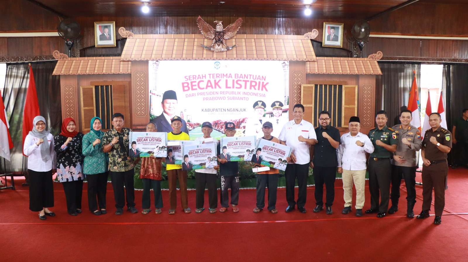 Nganjuk, Indonesiajayanews.com – Kapolres Nganjuk AKBP Suria Miftah Irawan, S.H., S.I.K., M.I.K., menghadiri kegiatan penyerahan bantuan 220 unit becak listrik dari Presiden Republik Indonesia kepada masyarakat penerima manfaat di Pendopo Kabupaten Nganjuk, Kamis (26/2/2026).