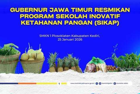 Surabaya, Indonesiajayanews.com – Gubernur Jawa Timur, Khofifah Indar Parawansa, resmi meluncurkan program Sekolah Inovatif Ketahanan Pangan (SIKAP) di SMKN 1 Plosoklaten, Kabupaten Kediri, Minggu (25/1/2026).
