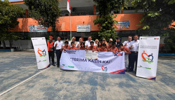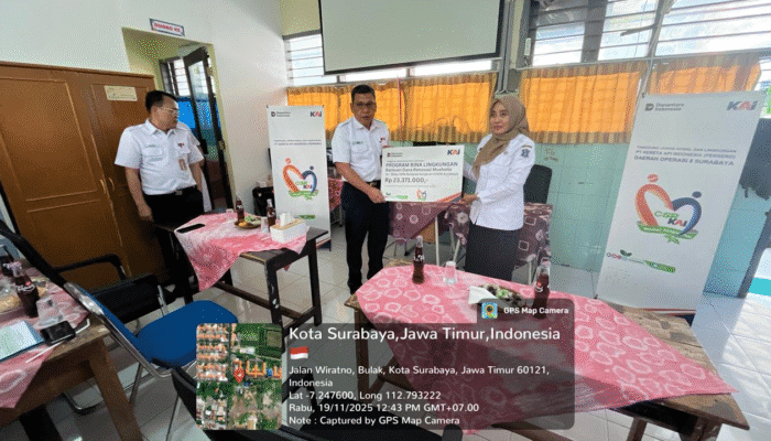 Surabaya, Indonesiajayanews.com – Sebagai bentuk kepedulian kepada lingkungan sekitarnya, PT KAI Daop 8 Surabaya pada hari Rabu (19/11/2025), bertempat di SDN Komplek Kenjeran II/506 Surabaya, Jalan Wiratno Nomor 2 Surabaya, mengadakan acara seremonial penyaluran dana TJSL (Tanggung Jawab Sosial Lingkungan) untuk Renovasi Musholah.