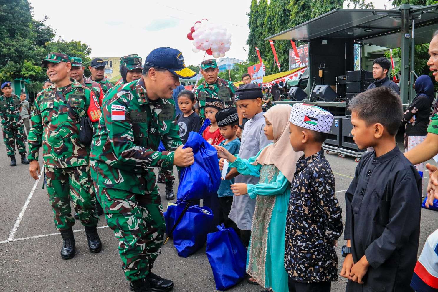 Selain itu, juga dilaksanakan pemberian paket sembako gratis kepada masyarakat kurang mampu serta anak-anak dari panti asuhan sebagai wujud bakti negeri dan kepedulian sosial TNI kepada masyarakat.