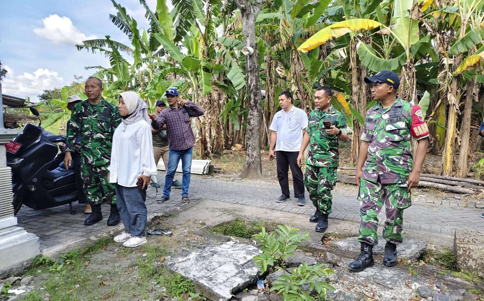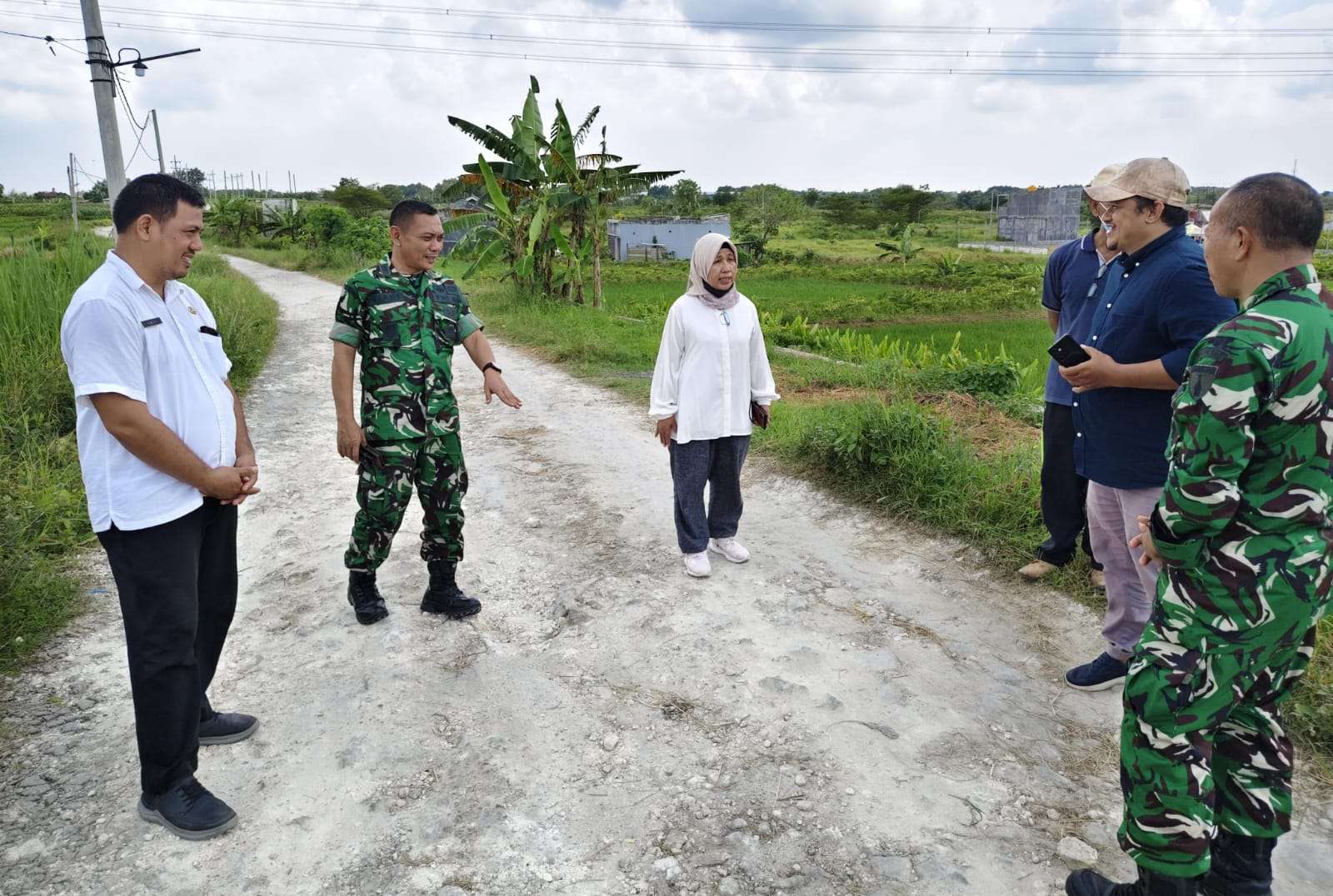 Kegiatan dimulai dengan rombongan melaksanakan peninjauan langsung ke sejumlah titik yang direncanakan menjadi sasaran program TMMD. Survei ini bertujuan untuk memastikan kesiapan lokasi, kondisi lapangan, serta menentukan prioritas pembangunan yang akan dilaksanakan dalam program tersebut.