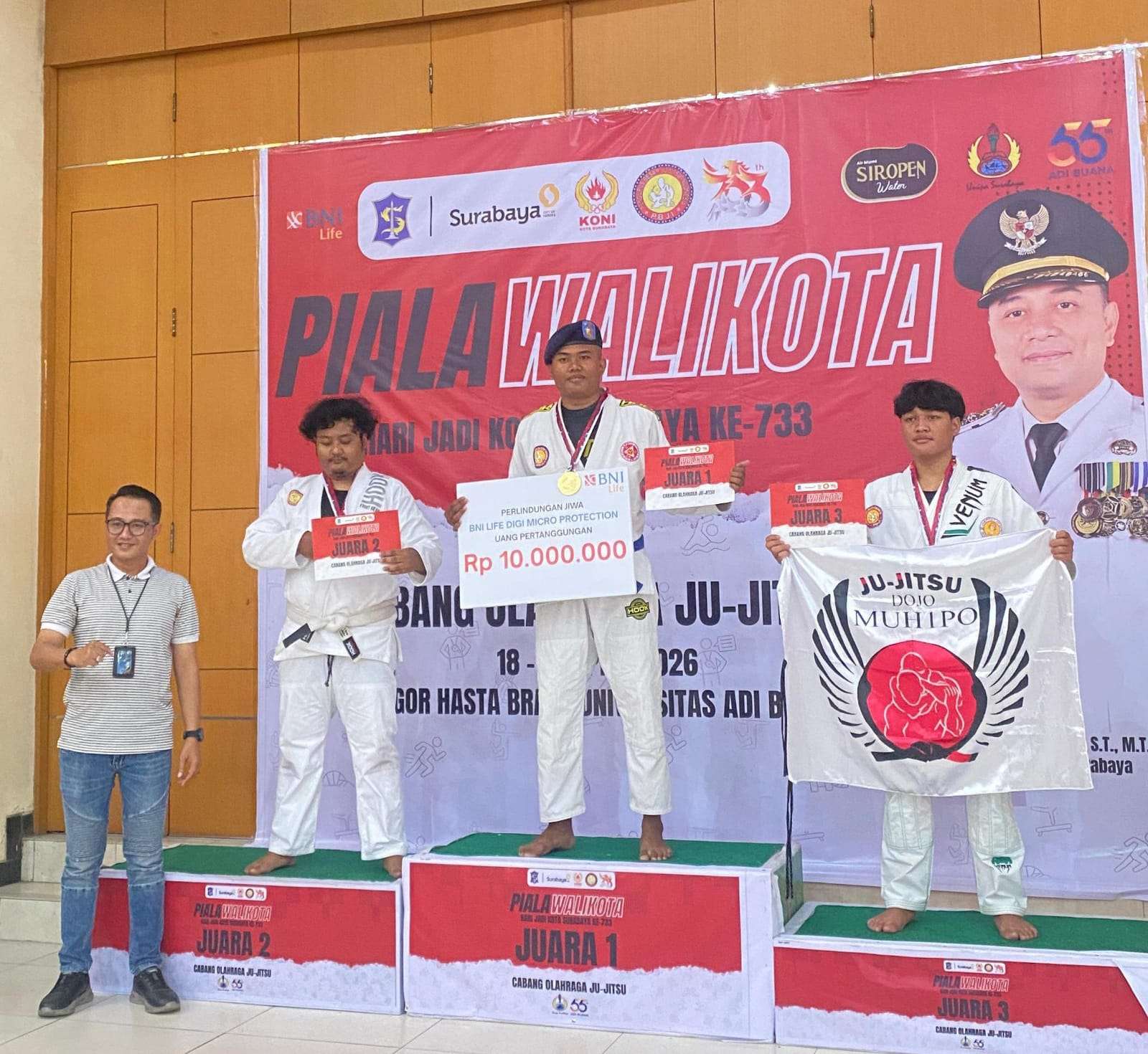 SURABAYA, Indonesiajayanews.com – Prestasi membanggakan kembali ditorehkan Taruna Fakultas Vokasi Pelayaran (FVP) Universitas Hang Tuah (UHT). Satria Pratama berhasil meraih Juara 1 cabang olahraga Ju-Jitsu dalam ajang Piala Wali Kota Surabaya 2026 yang digelar di GOR Hasta Brata pada 18–19 April 2026.