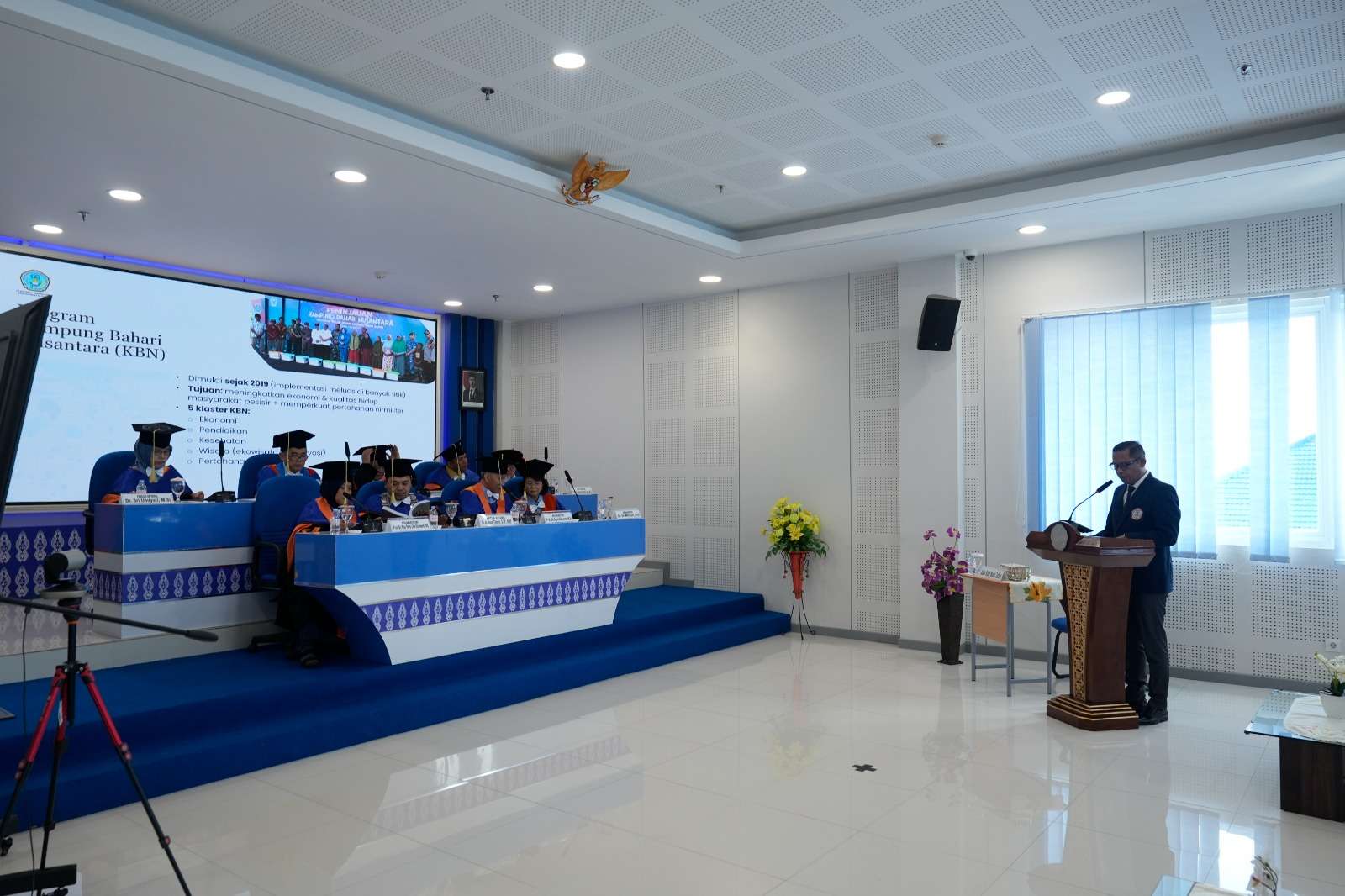 Sidang berlangsung secara khidmat dan akademis dengan dihadiri oleh tim penguji, dosen, keluarga, serta tamu undangan. Promovendus memaparkan hasil penelitian secara komprehensif, mulai dari latar belakang, metodologi penelitian, hingga rekomendasi strategis yang diharapkan dapat menjadi model pemberdayaan masyarakat maritim yang berkelanjutan.
